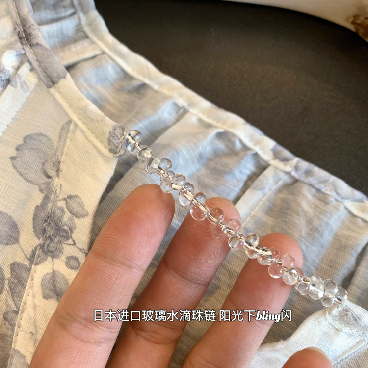 领子前襟点缀了日本jin口的篙透玻璃水滴珠链
