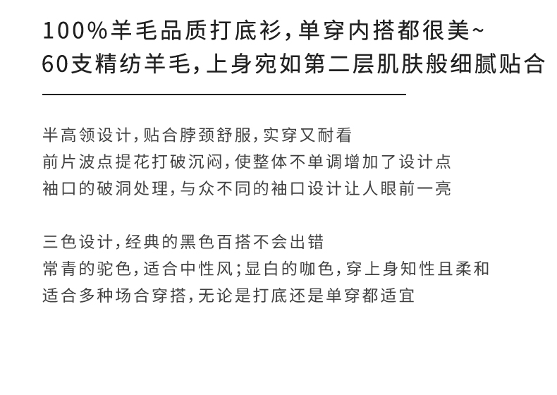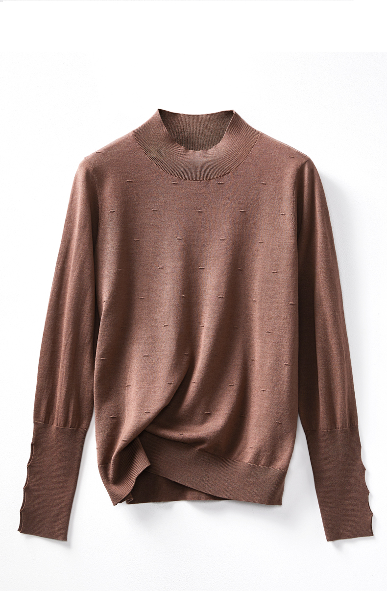 玳莎100%绵羊毛半高领长袖套头衫时尚外穿 提花打底内搭 BD33312