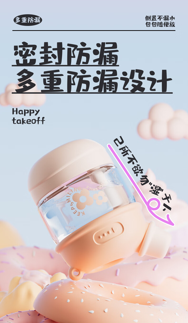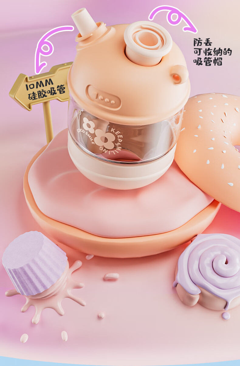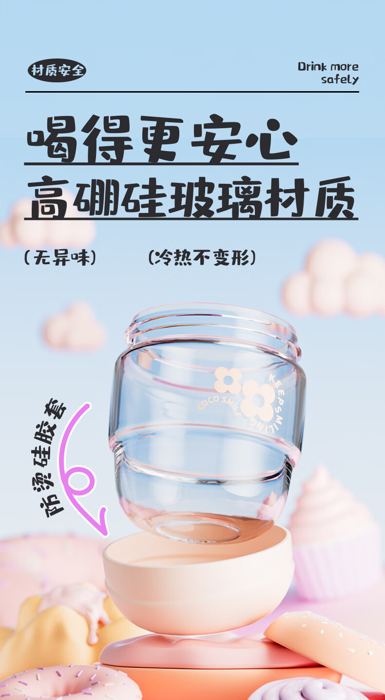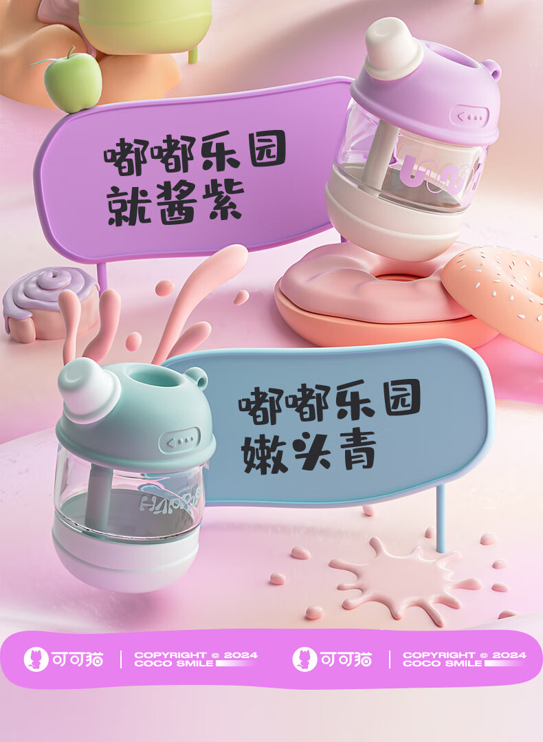 【6F】多样屋可可猫女玻璃杯高颜值杯子便携吸管杯夏天手提咖啡杯2024新款儿童 吸管玻璃随手杯-绿 450ml