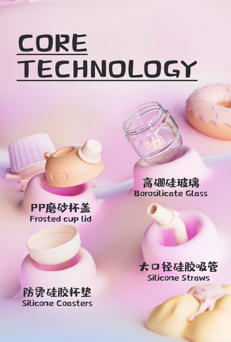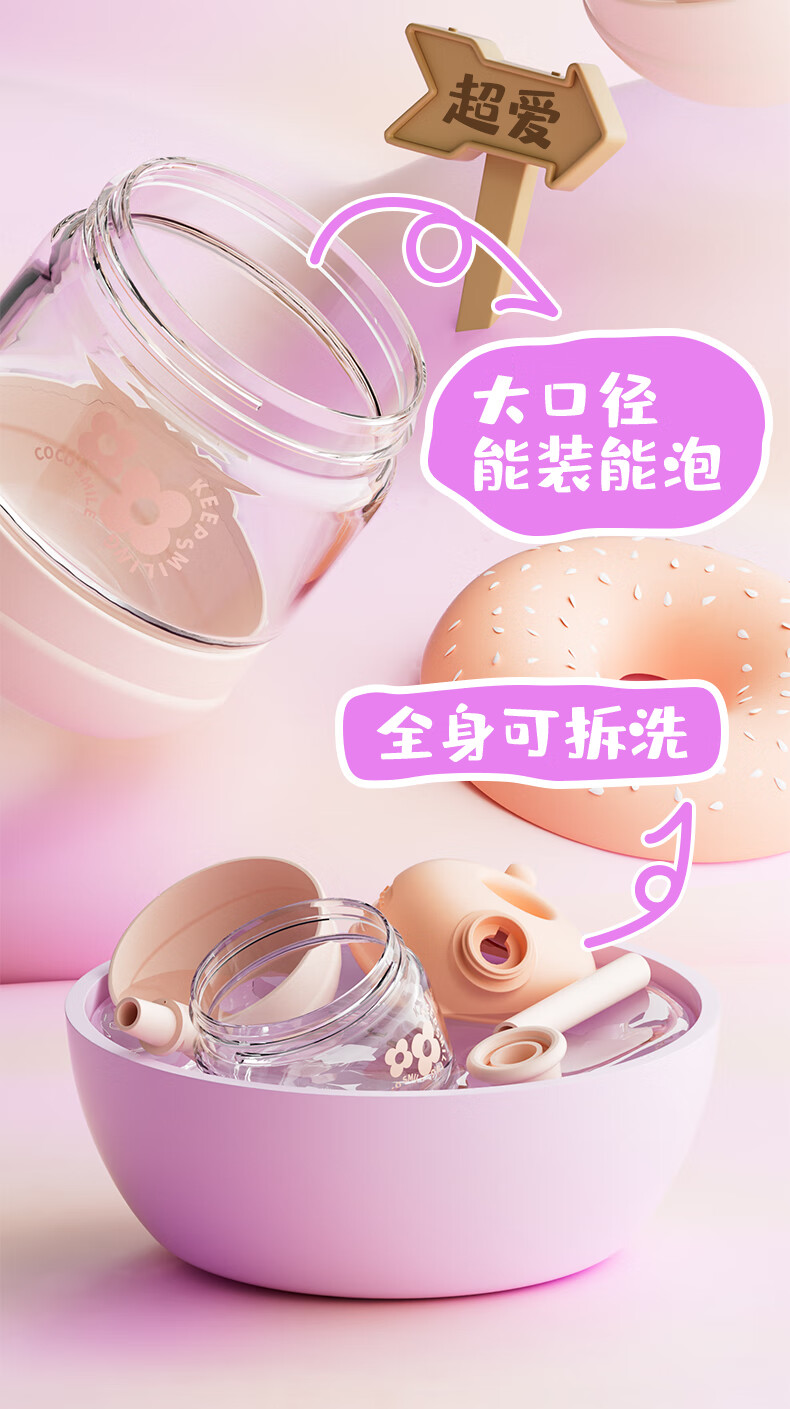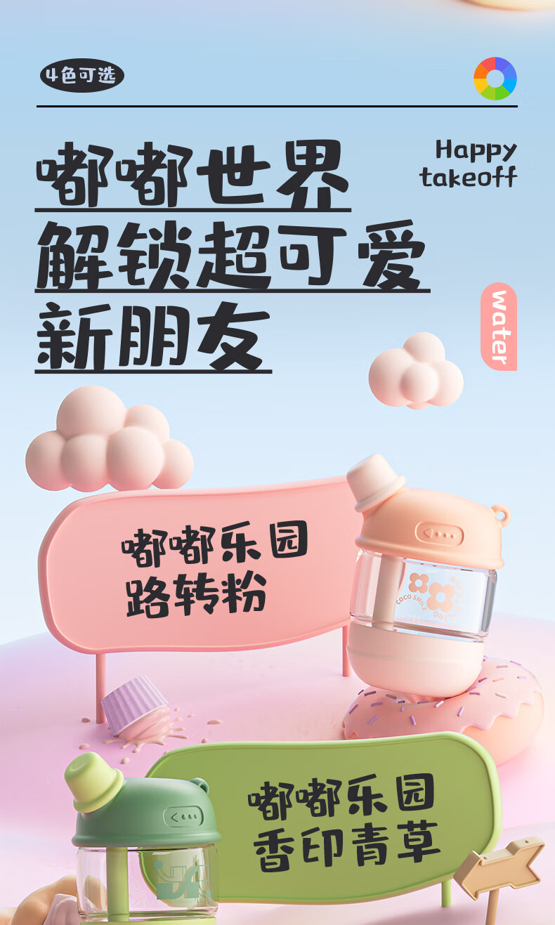 【6F】多样屋可可猫女玻璃杯高颜值杯子便携吸管杯夏天手提咖啡杯2024新款儿童 吸管玻璃随手杯-绿 450ml