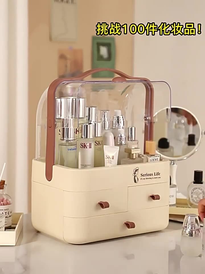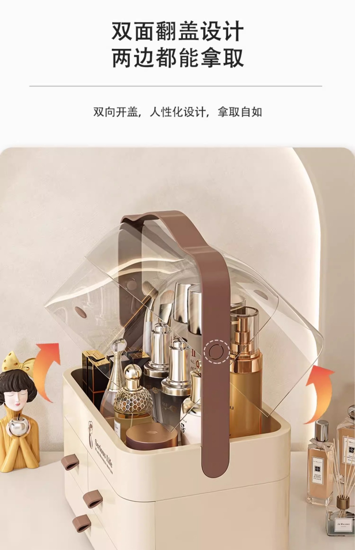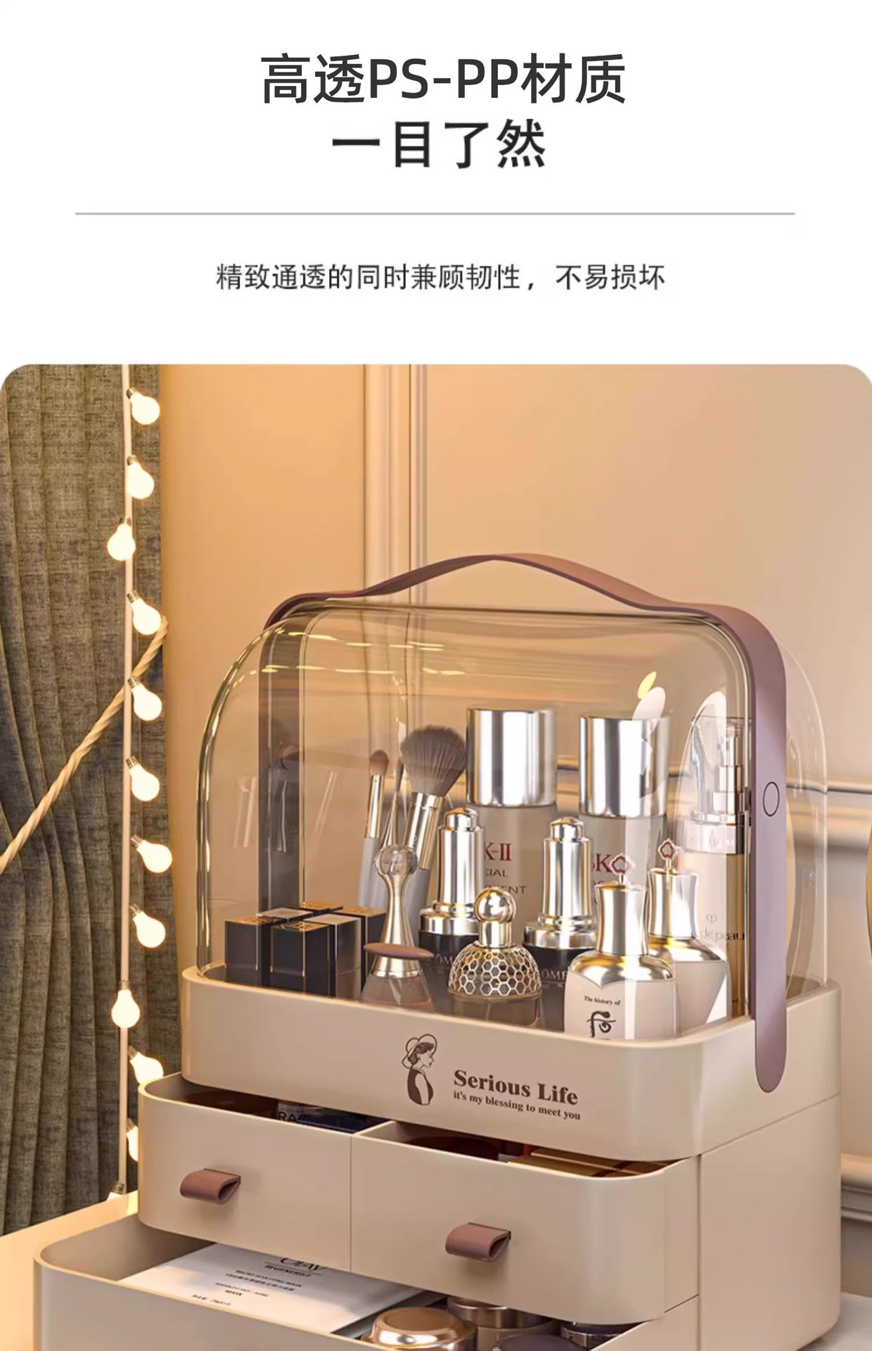 【大容量防尘化妆品收纳盒】化妆品的“小天地” 超大的容量能装下好多瓶瓶罐罐 透明的设计,让你一眼就能找到想要的东西 有效阻挡灰尘,让它们始终保持干净整洁