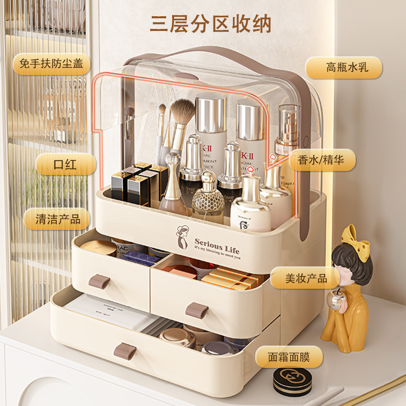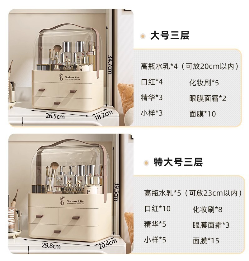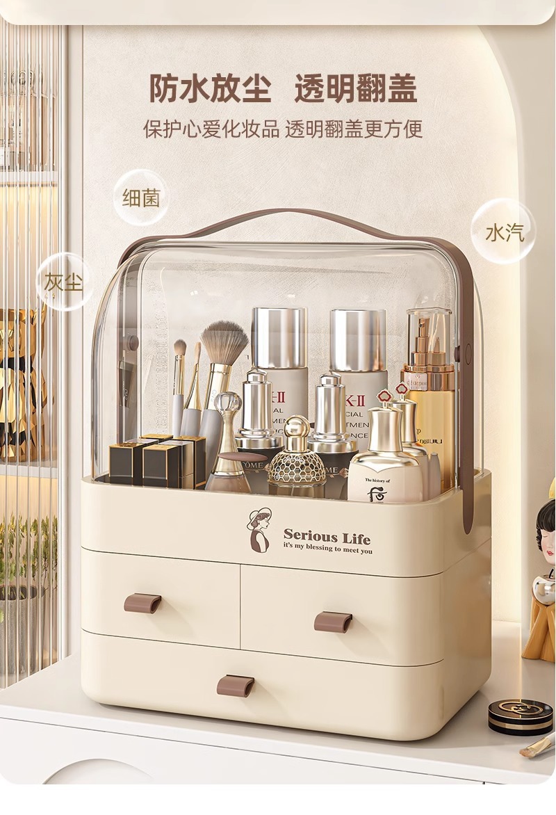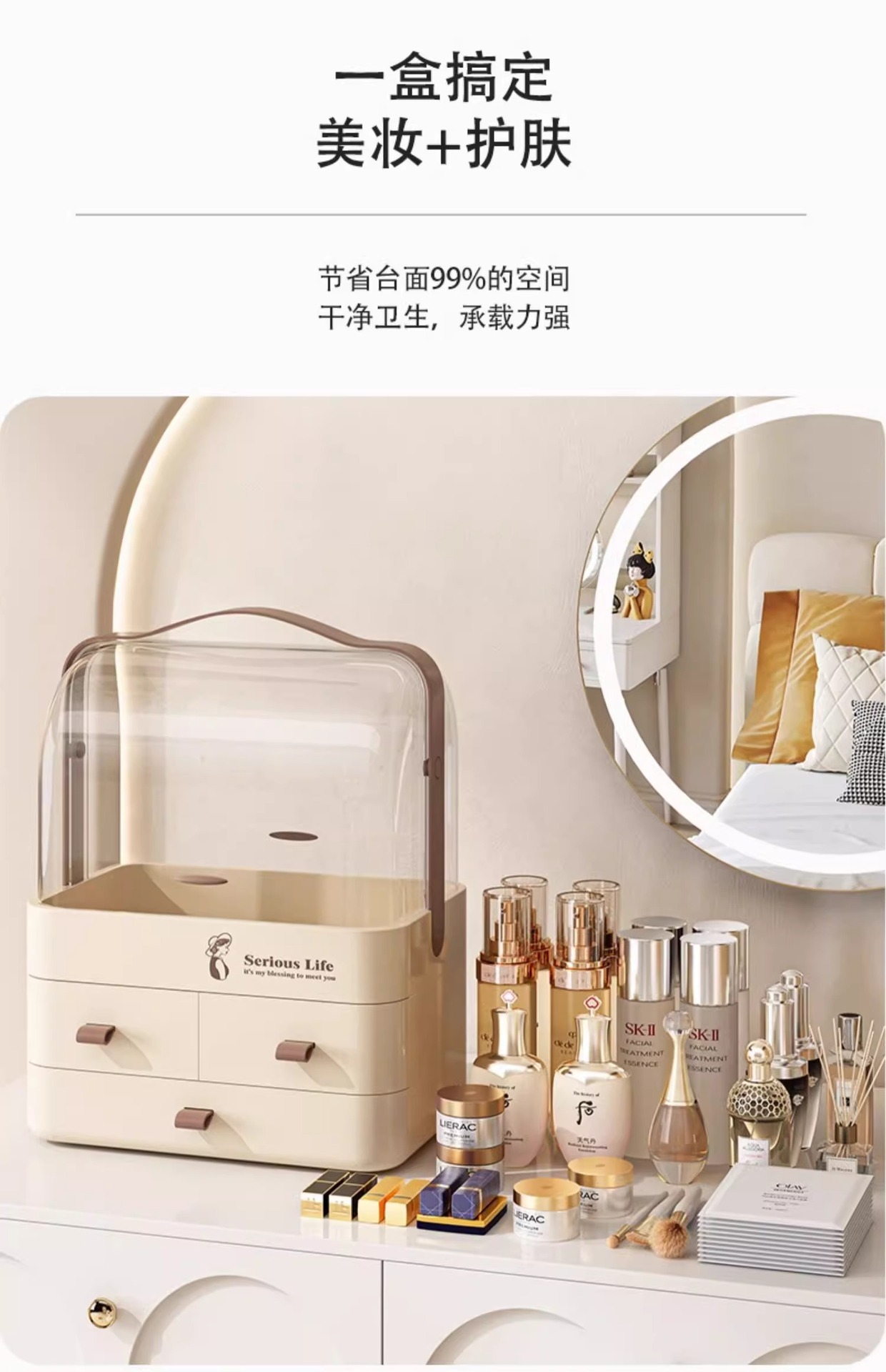 【大容量防尘化妆品收纳盒】化妆品的“小天地” 超大的容量能装下好多瓶瓶罐罐 透明的设计,让你一眼就能找到想要的东西 有效阻挡灰尘,让它们始终保持干净整洁