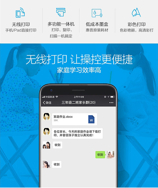 关键操作很方便,只要手机有网络,小程序轻轻一点,微信上老师布置的作业,瞬间转换格式打印出来!想打什么打什么!