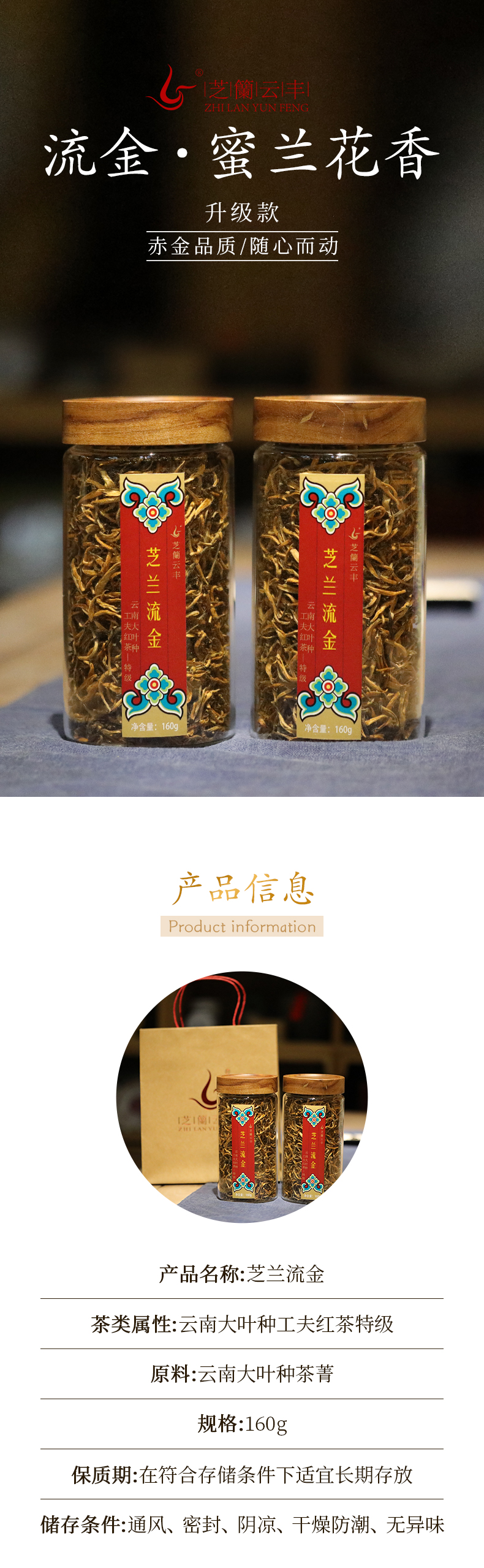 芝兰流金 云南红茶 罐装160g