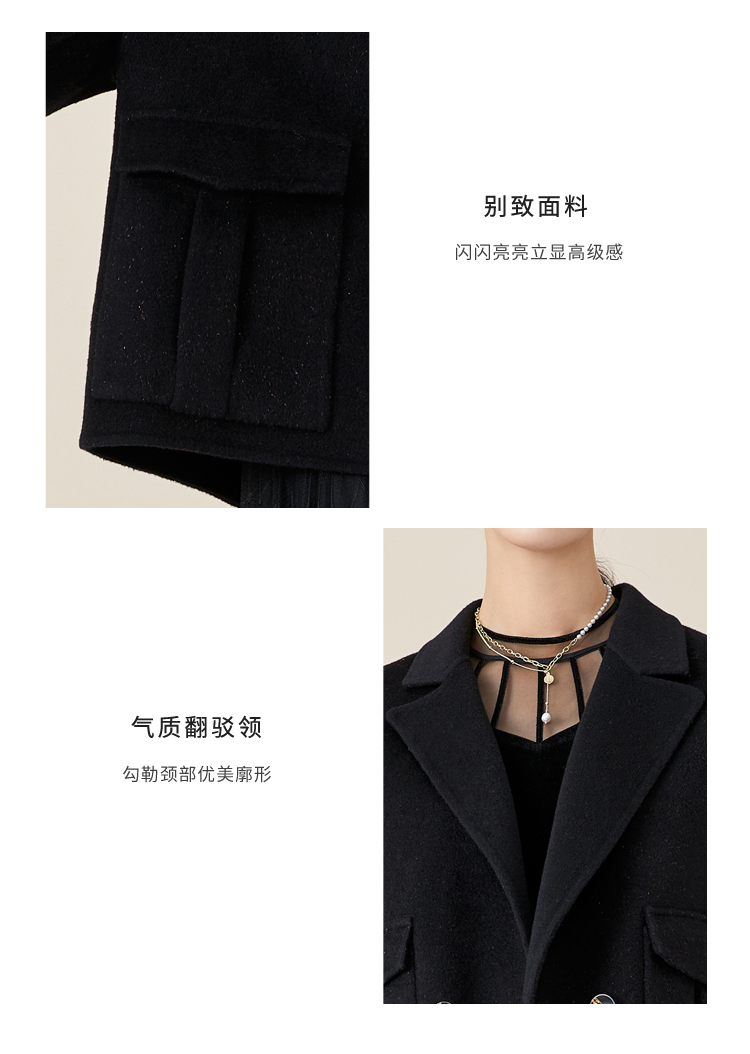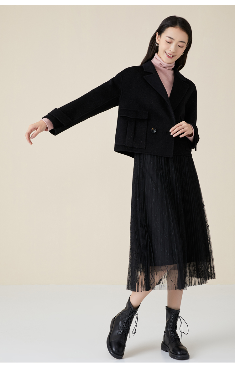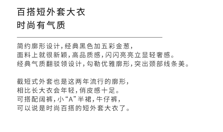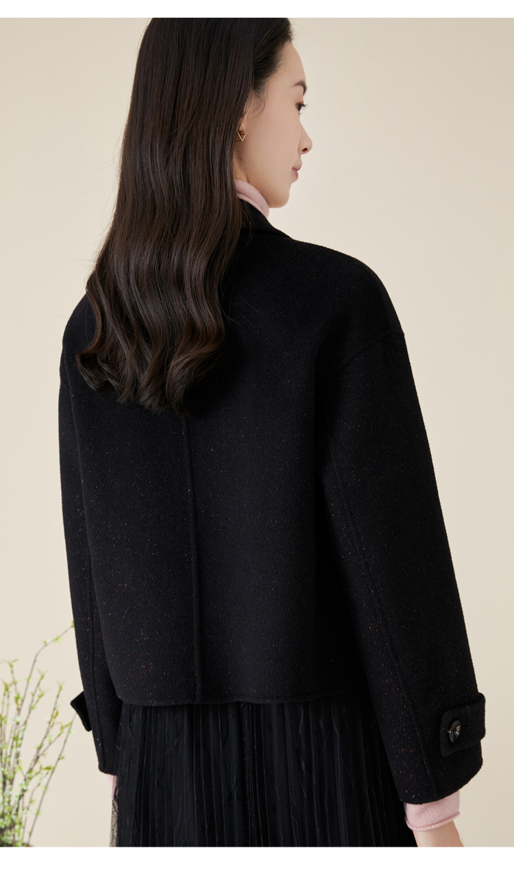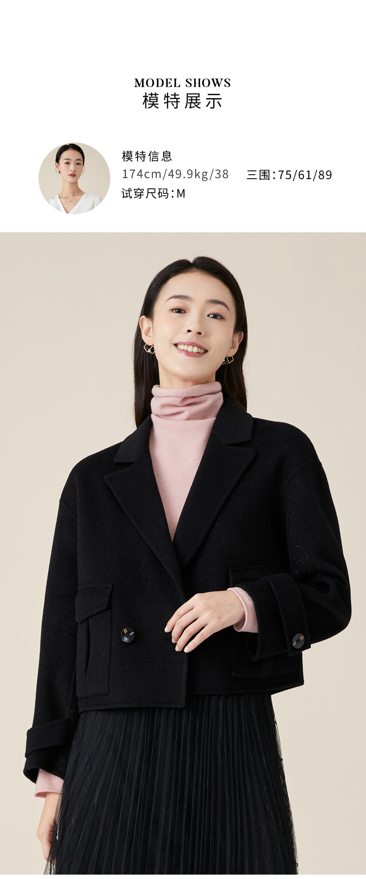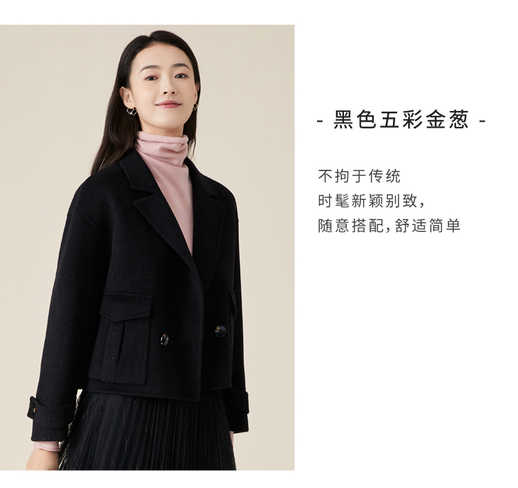 玳莎短款毛呢外套女秋冬新款通勤宽松西装领小个子羊毛呢子大衣 BD37301