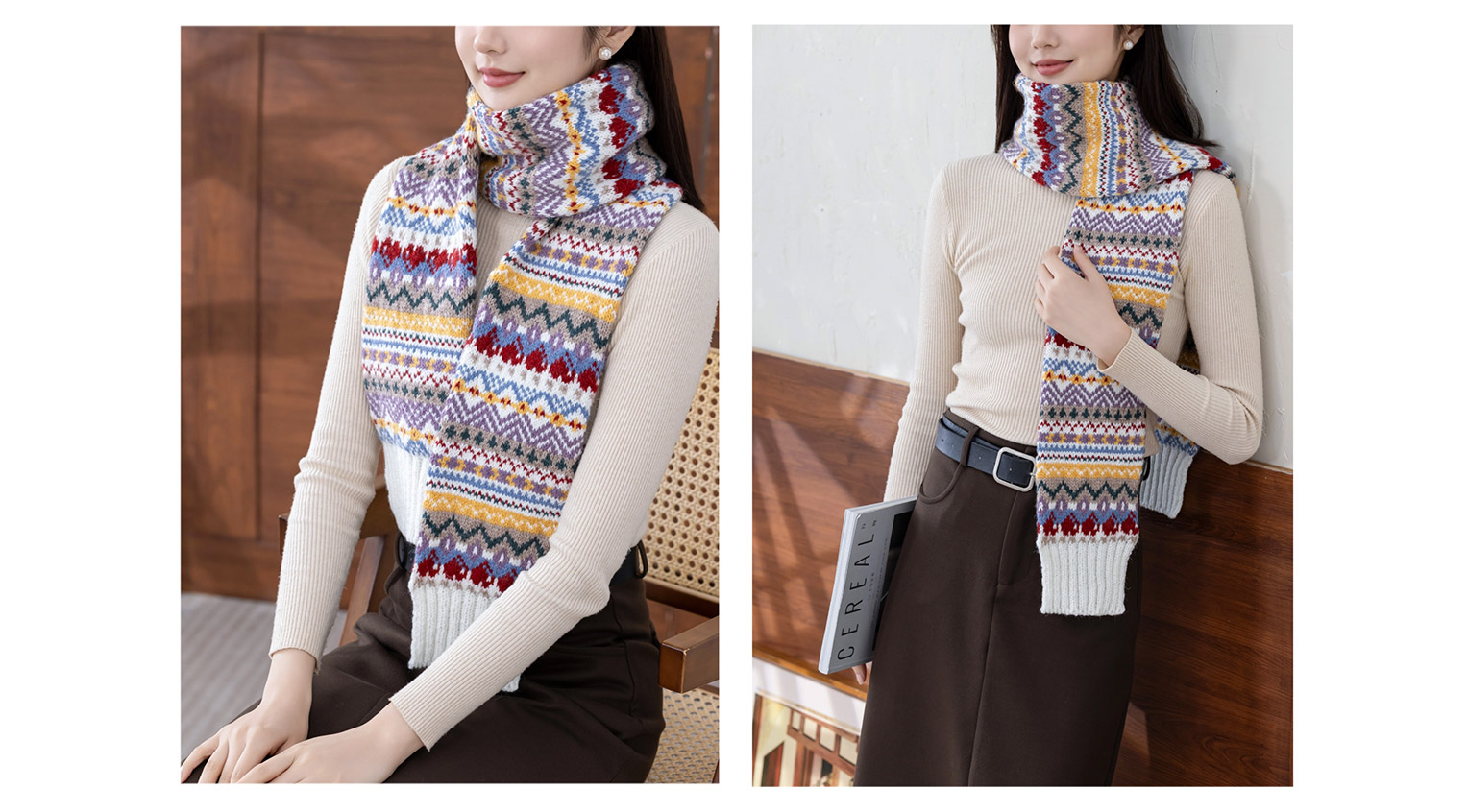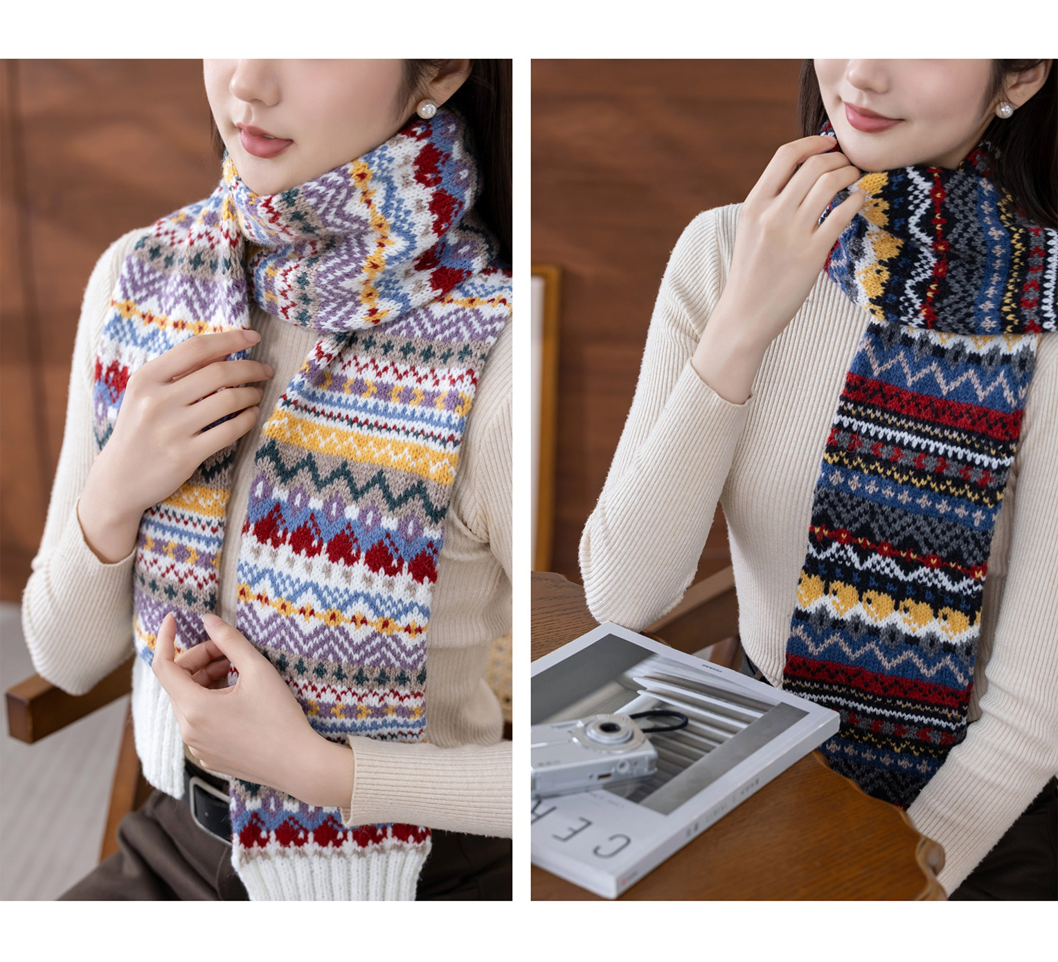 苏苏姐家织爱提花围巾手工diy棒针编织毛线团冬季自制材料包