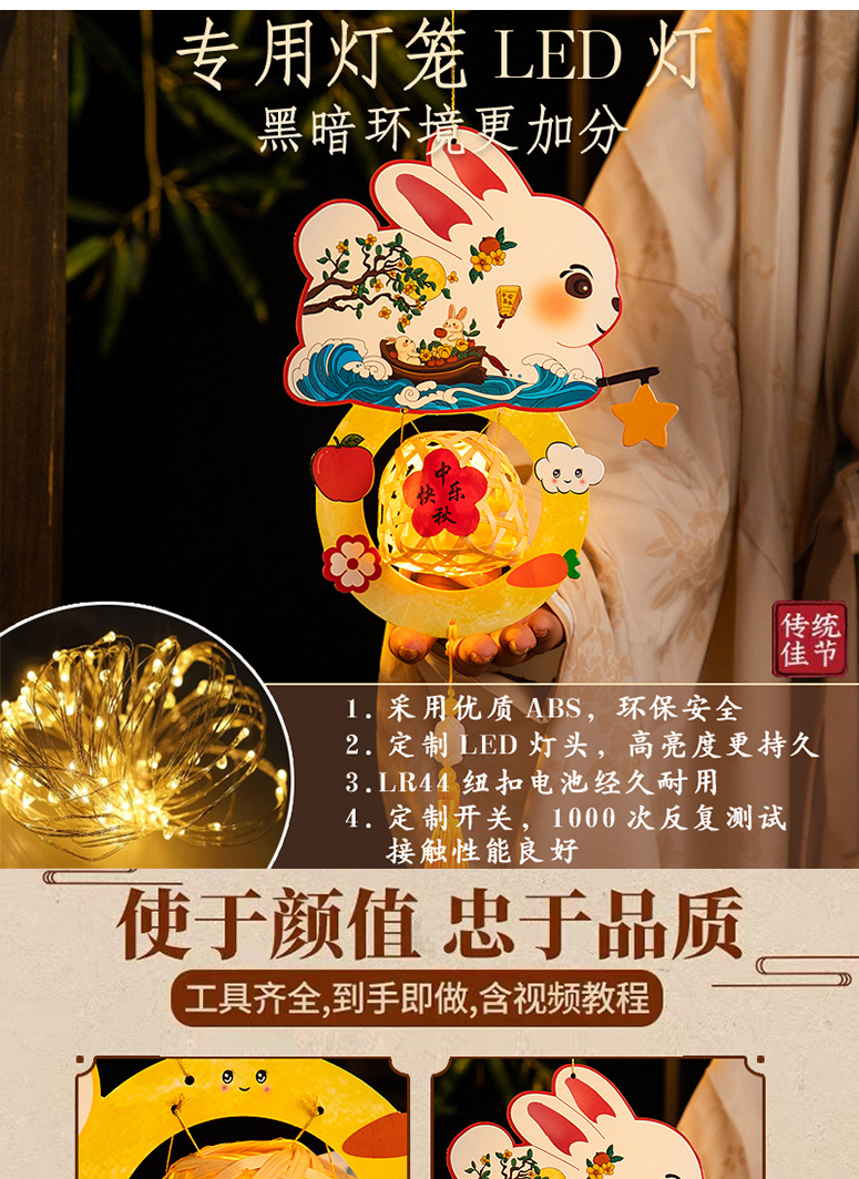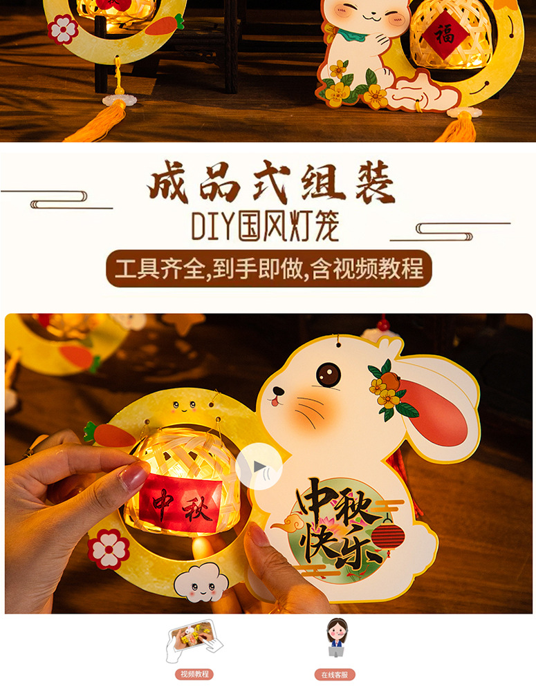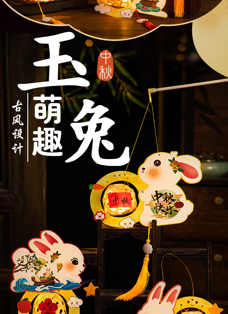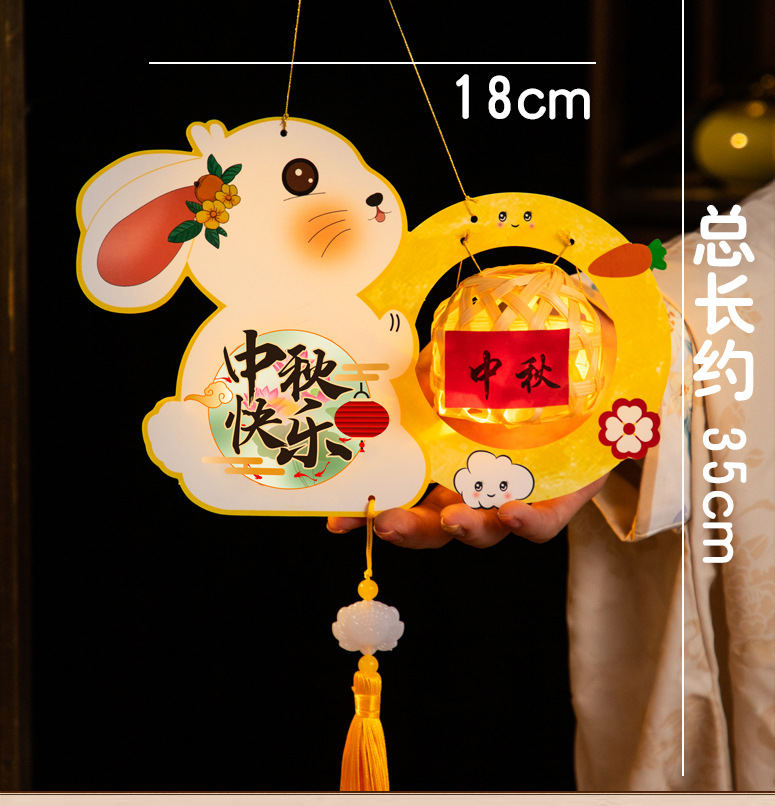 【中秋限定❗️小兔子竹编灯笼】采用优质材质,环保安全/经久耐用,成品式组装DIY国风灯笼,新款儿童手工diy材料包,中秋节竹编小灯笼古风花灯L