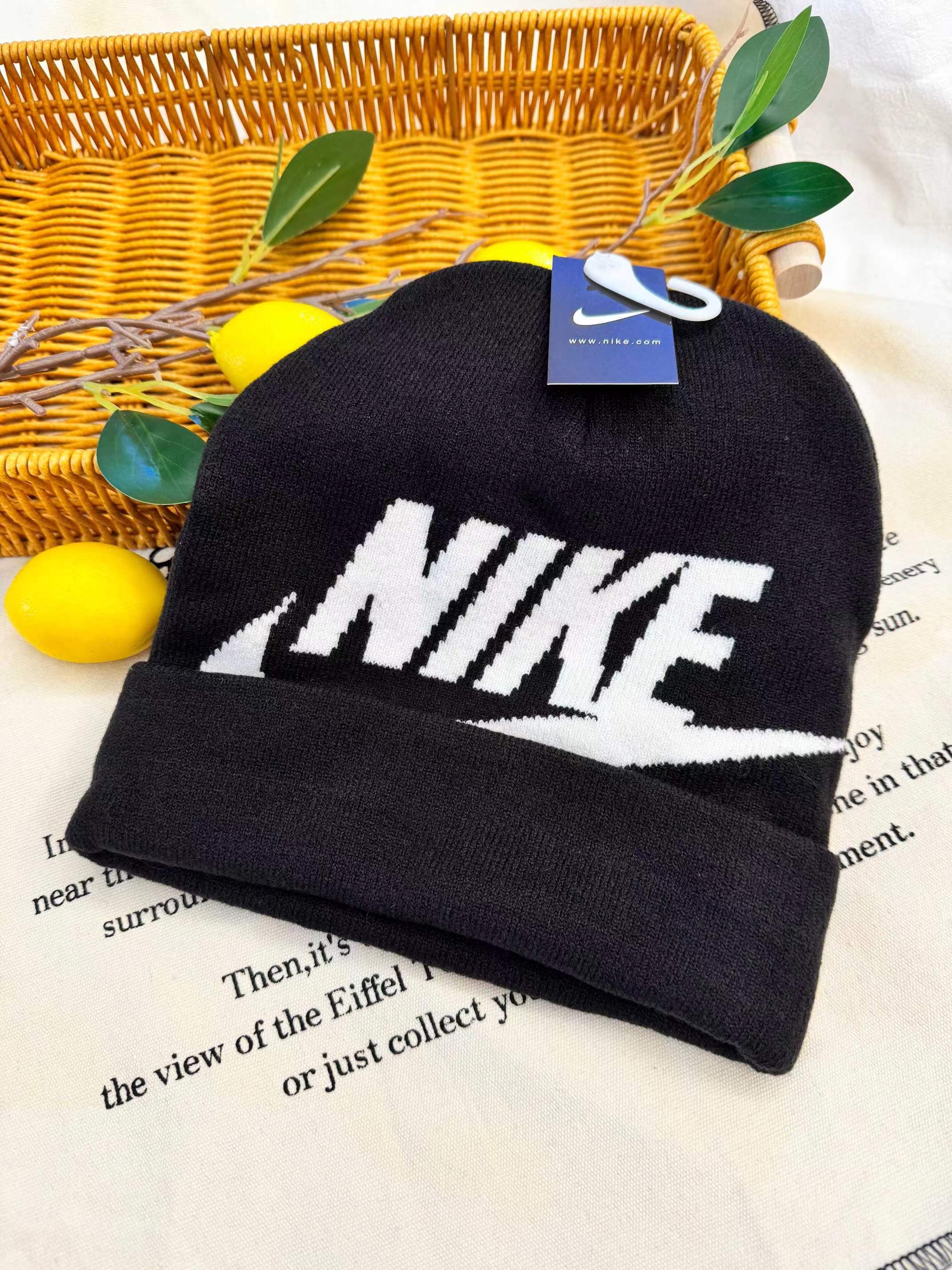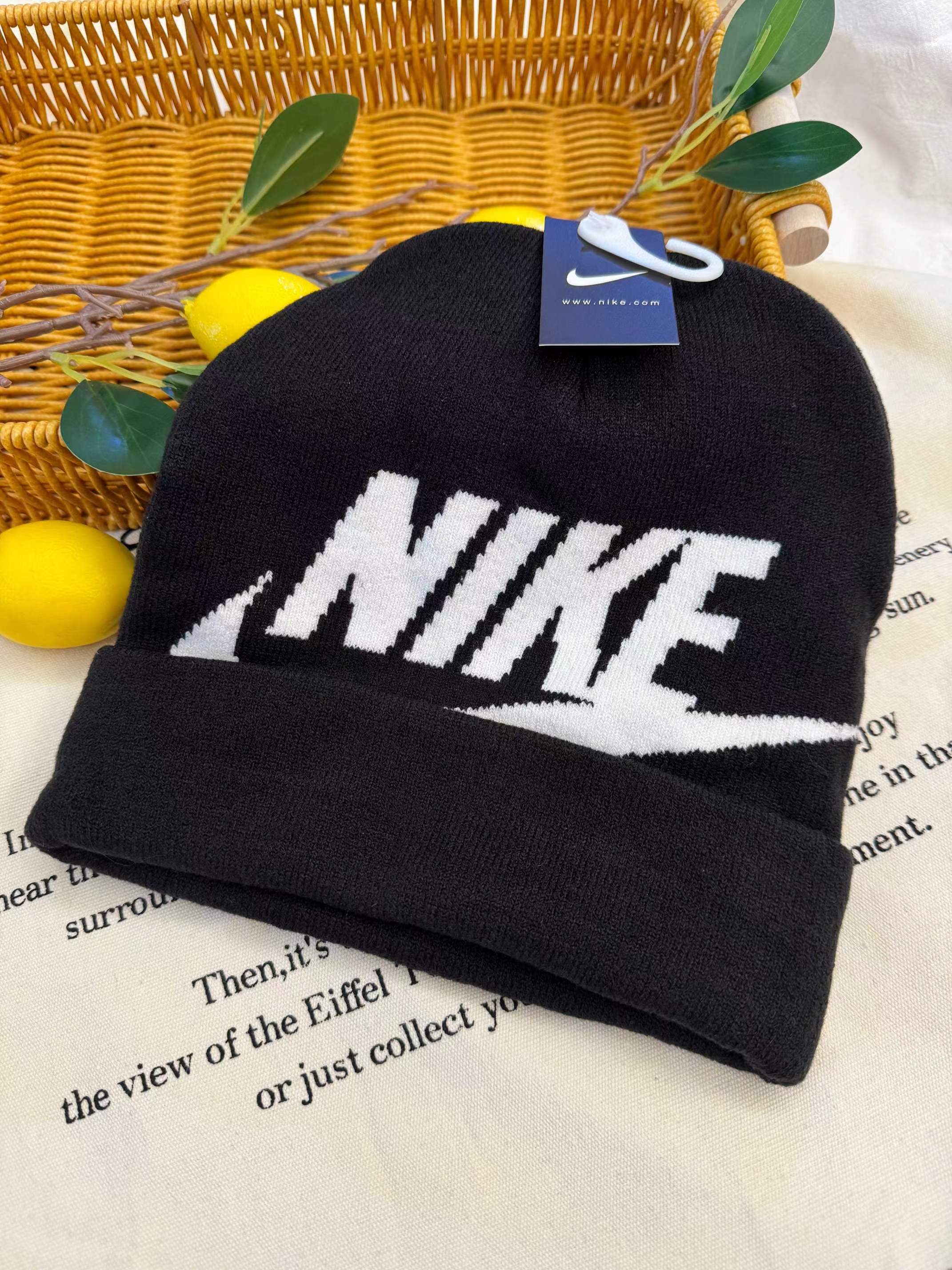 D110764保暖翻边针织帽大logo提花勾勾帽子