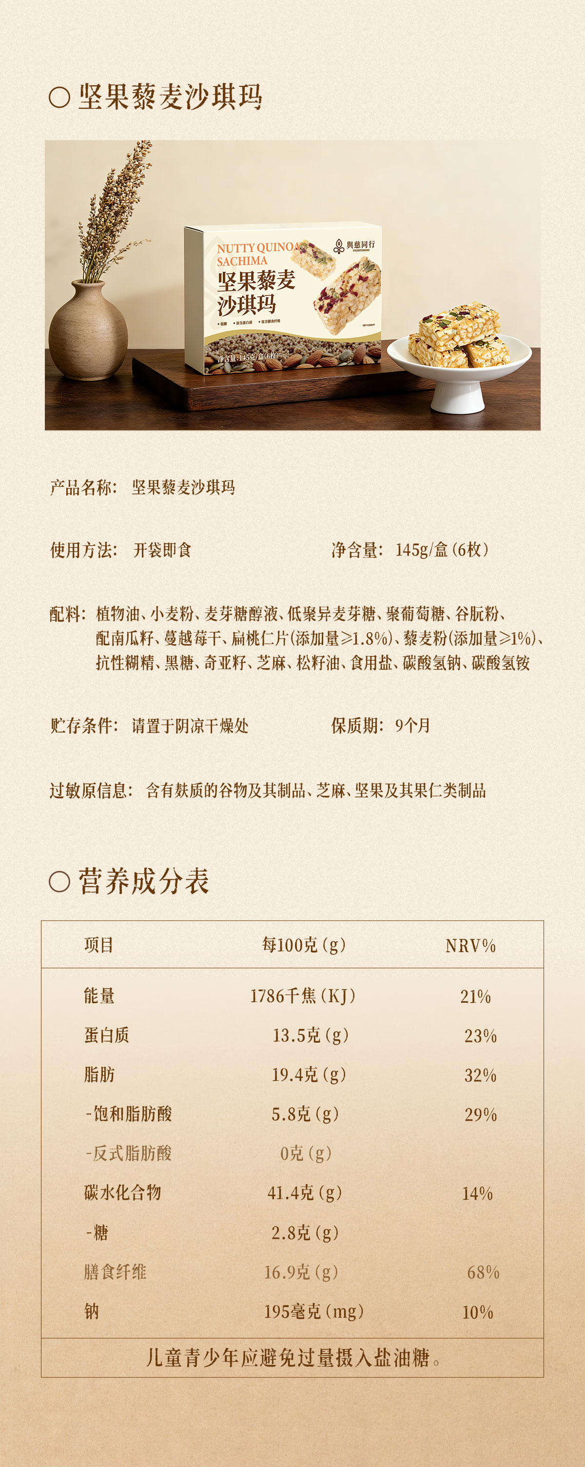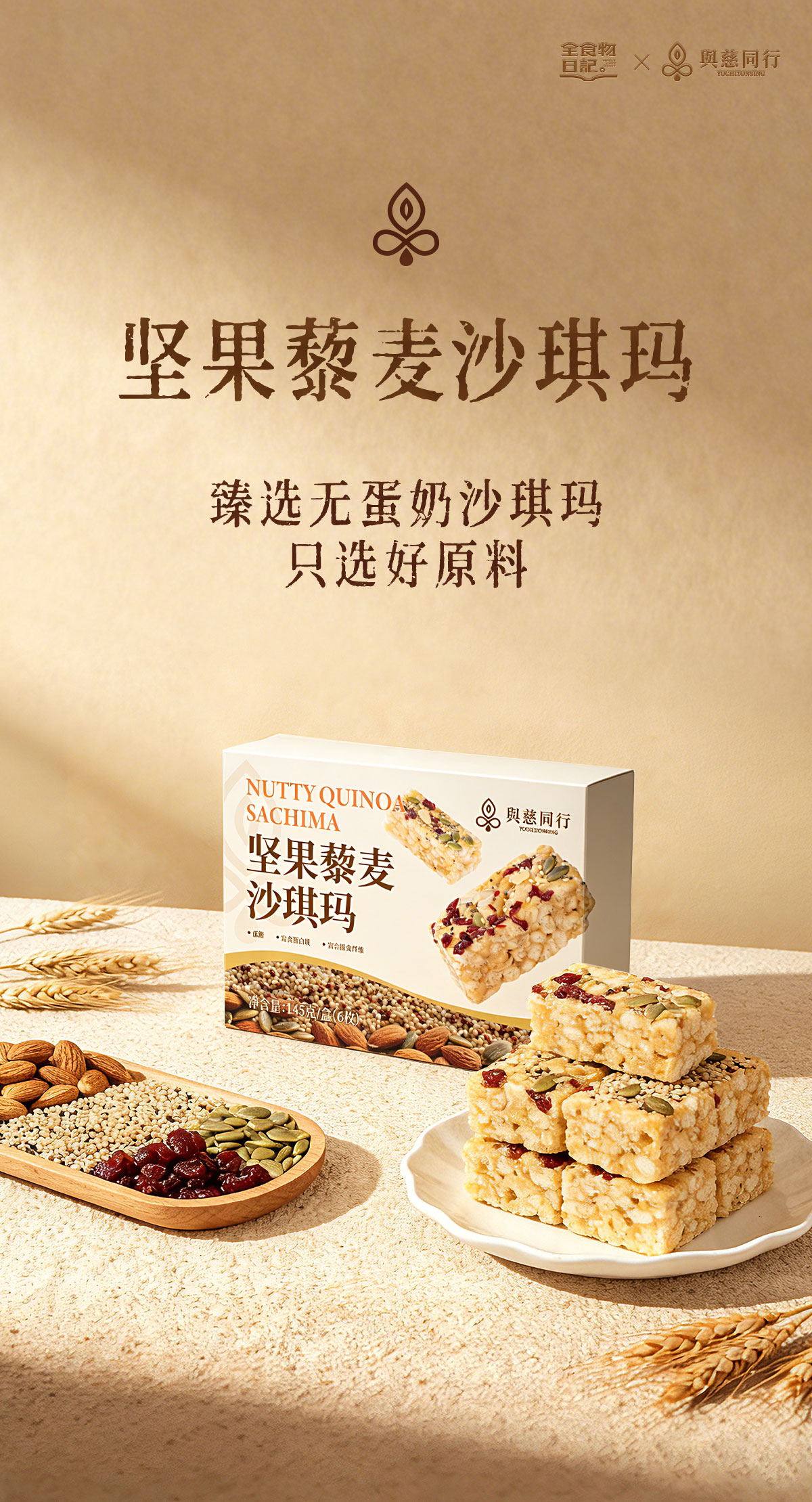 全食物日记x与慈同行 坚果藜麦沙琪玛145g/盒(6枚)