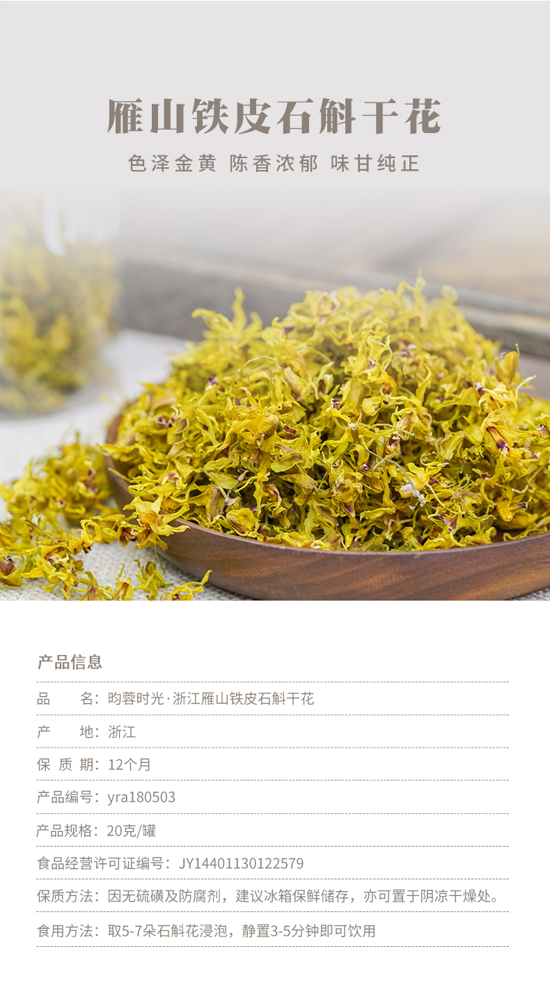 【昀蓉时光·浙江雁荡山铁皮石斛花 】·原生态·花香浓郁·色泽金黄(20g/罐)