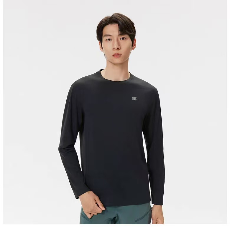 【9hd1】男子户外运动徒步弹力圆领长袖T恤!!