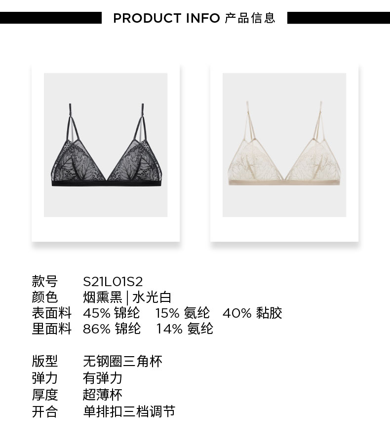 LOAM|迭影 Triangle 双层蕾丝三角杯无钢圈 [ 黑 / 白 / 绿 / 蓝 / 黄 / 咖 ]