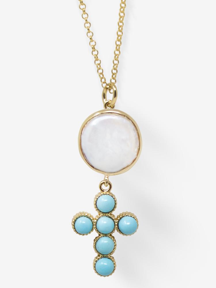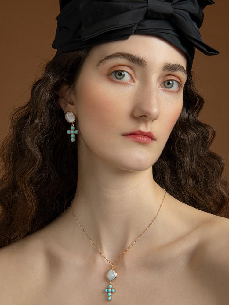 订购6周到|Vintouch-Hope-十字 绿松石 珍珠 项链[意大利设计师]