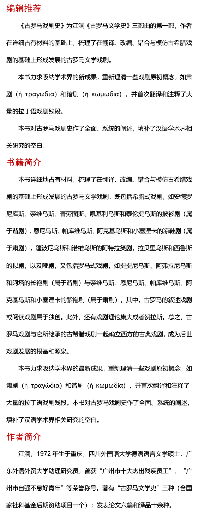 古罗马戏剧史 系统梳理作为后世戏剧发展之根基和源泉的古罗马戏剧 江澜 《古罗马文学史》三部曲第1部