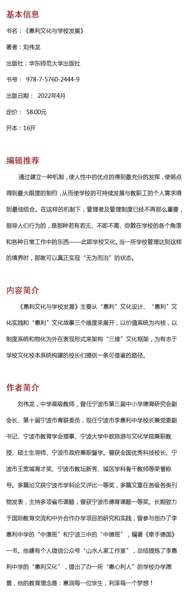 惠利文化与学校发展 刘伟龙 教师读物