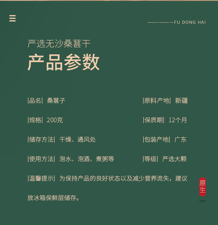【平衡艾专属】福东海 桑葚干200克袋装 精选无沙黑桑葚干茶即食