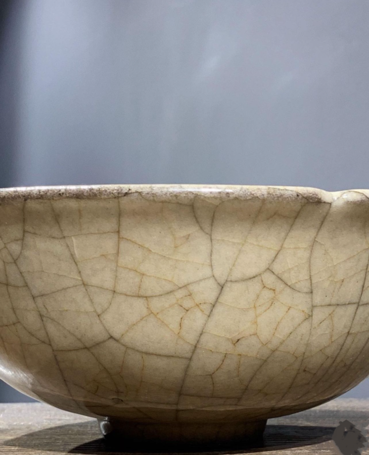 黑胎哥窑灰青釉葵口碗,顺丰包邮