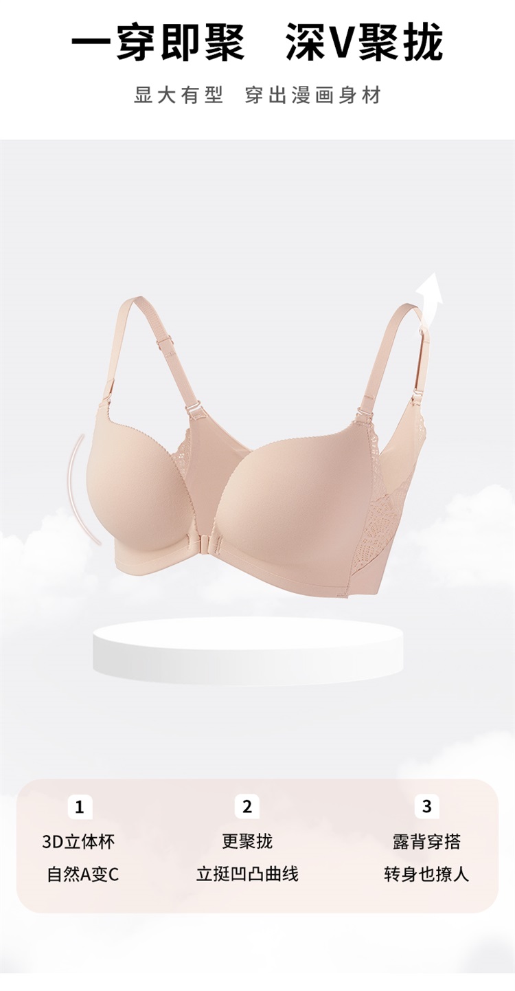 雅黛丽内衣女聚拢小胸显大前开扣式文胸无痕防下垂背心式女士胸罩