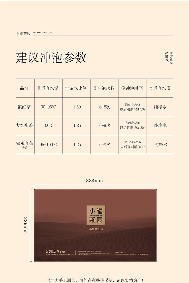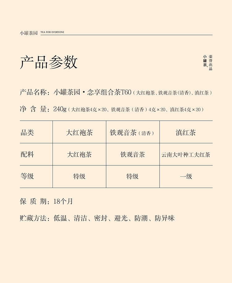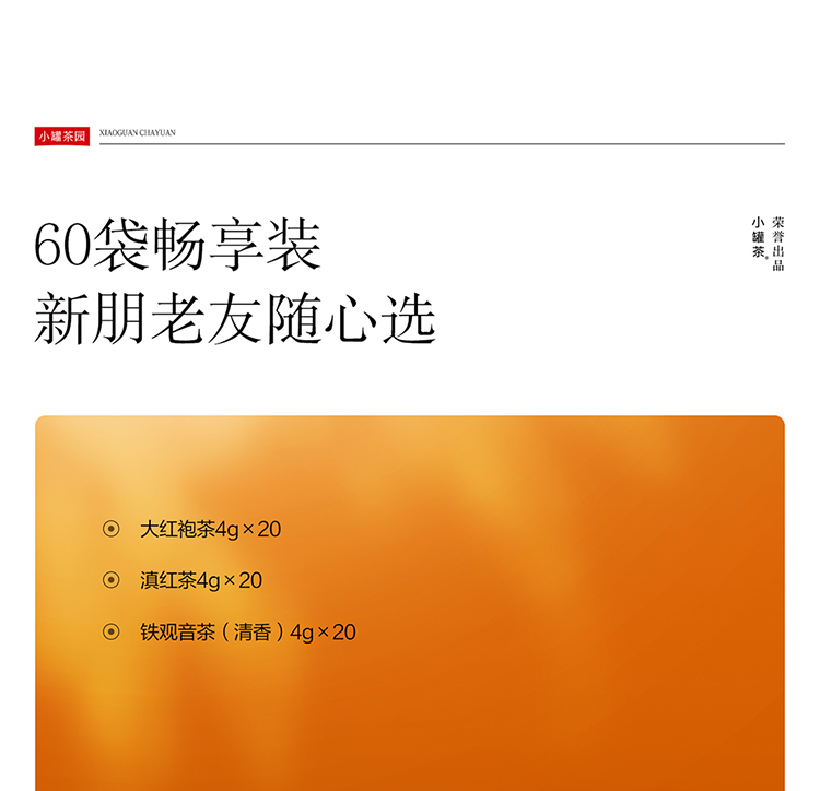小罐茶园 念享组合茶T60 (大红袍茶4克*20袋、铁观音茶(清香)4克*20袋、滇红茶4克*20袋) [现货]