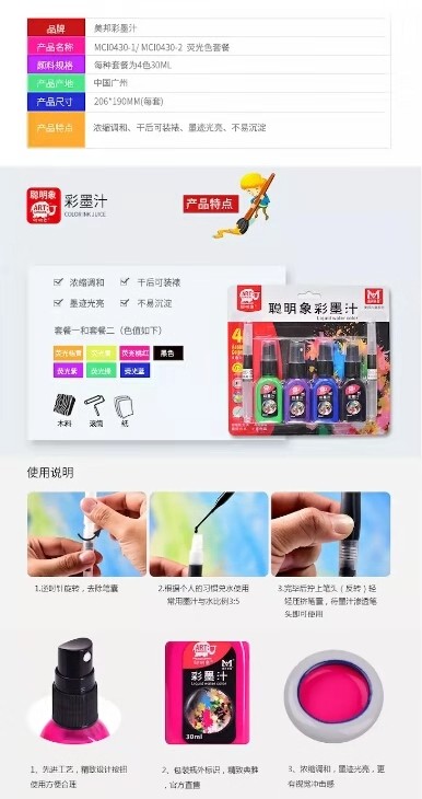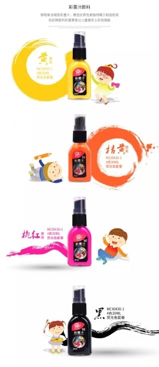 4色30ml套装儿童彩墨汁(荧光色)-暖色系冷色系
