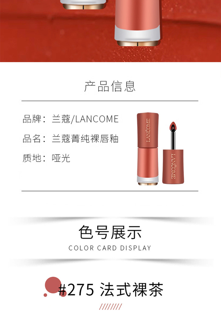 法国 LANCOME/兰蔻唇釉小样两件套3ML*2 (#196半透裸砂#275法式裸茶)一般贸易