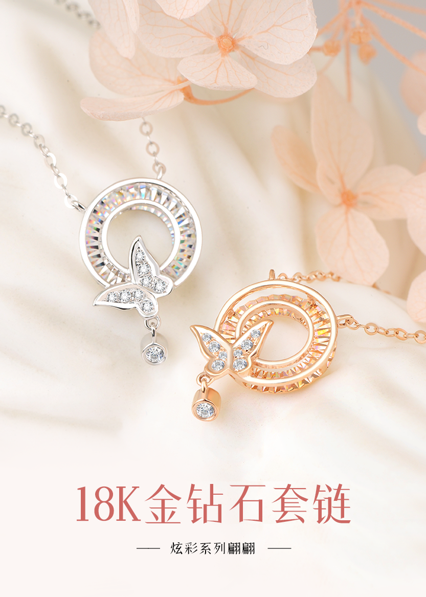 【炫彩系列】翩翩18K金钻石套链