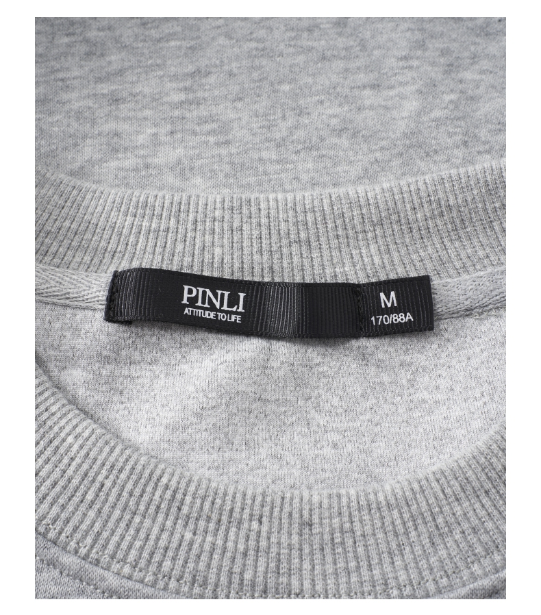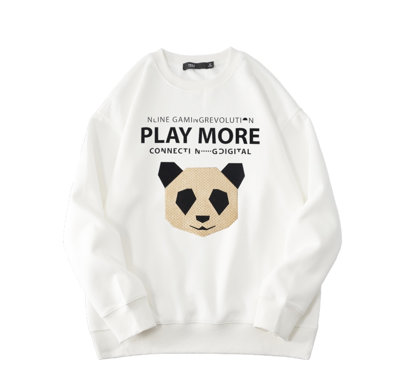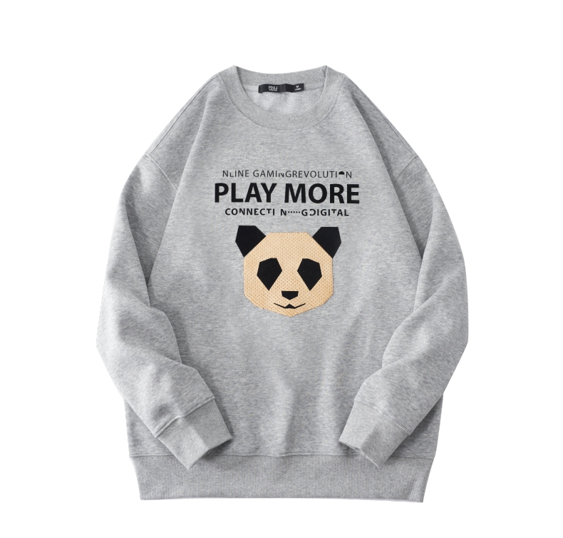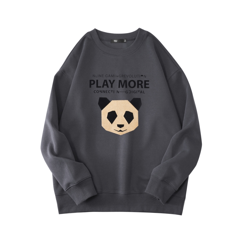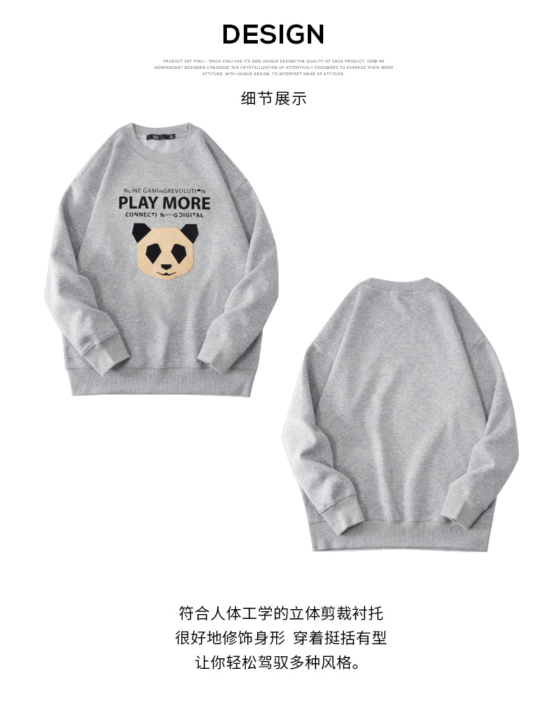 PINLI品立秋冬新款熊猫植绒套头卫衣男士印花圆领长袖上衣潮BG223209013