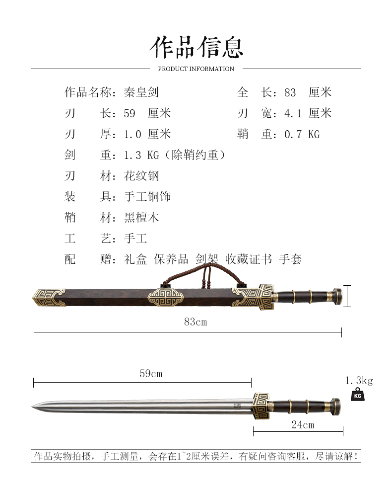 秦皇剑 战国剑汉剑 硬剑一体刀剑 龙泉沈广隆宝剑 未开刃