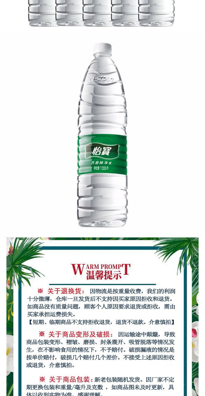 怡宝饮用纯净水 1.555L*6支