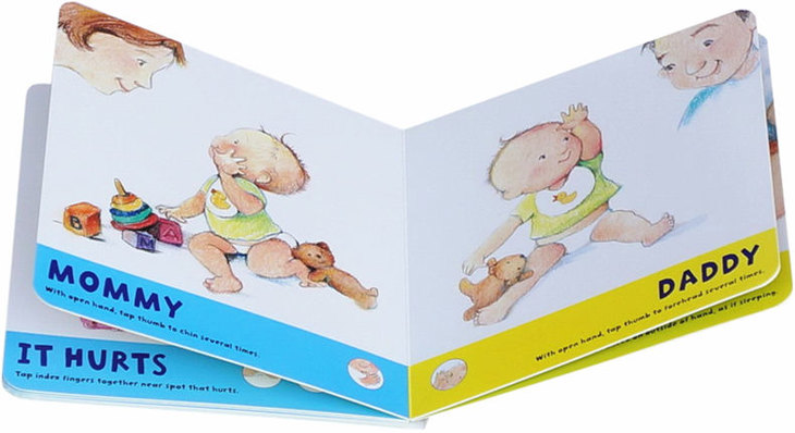 Long before they?re able to talk, babies have a whole lot to say. With this adorable board book of essential signs, babies and toddlers can easily learn how to communicate their needs, wants, and feelings?and even make basic observations?with a simple gesture. Studies show that babies who use sign language feel less frustrated, throw fewer tantrums, and often learn to talk more easily. Just point to a sign in the book, say the word while making the sign, and the baby will soon be signing. Communicating a wet diaper or a hungry belly, asking for help or saying ?all done? becomes as easy as waving hello or good-bye. And these are just a few of the thirteen signs inside this small and adorably illustrated board book, perfect for little hands?and minds?to grasp.