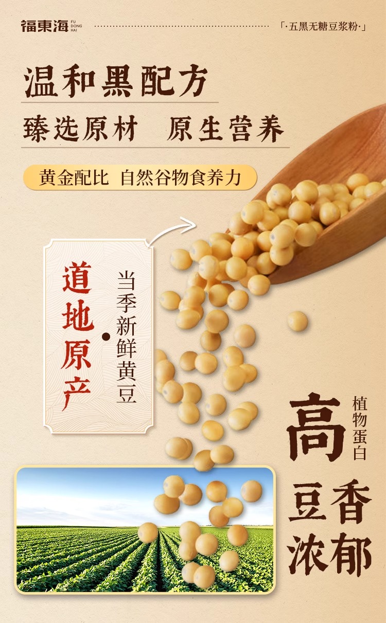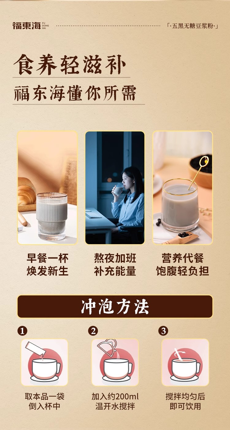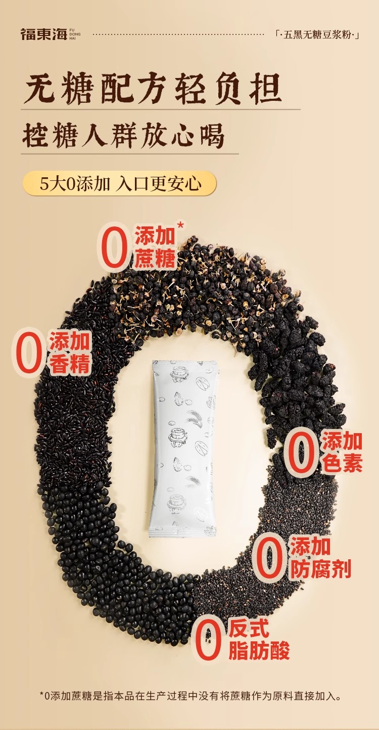 福东海 五黑无糖豆浆粉300g 控糖糖友推荐早餐冲泡独立袋装