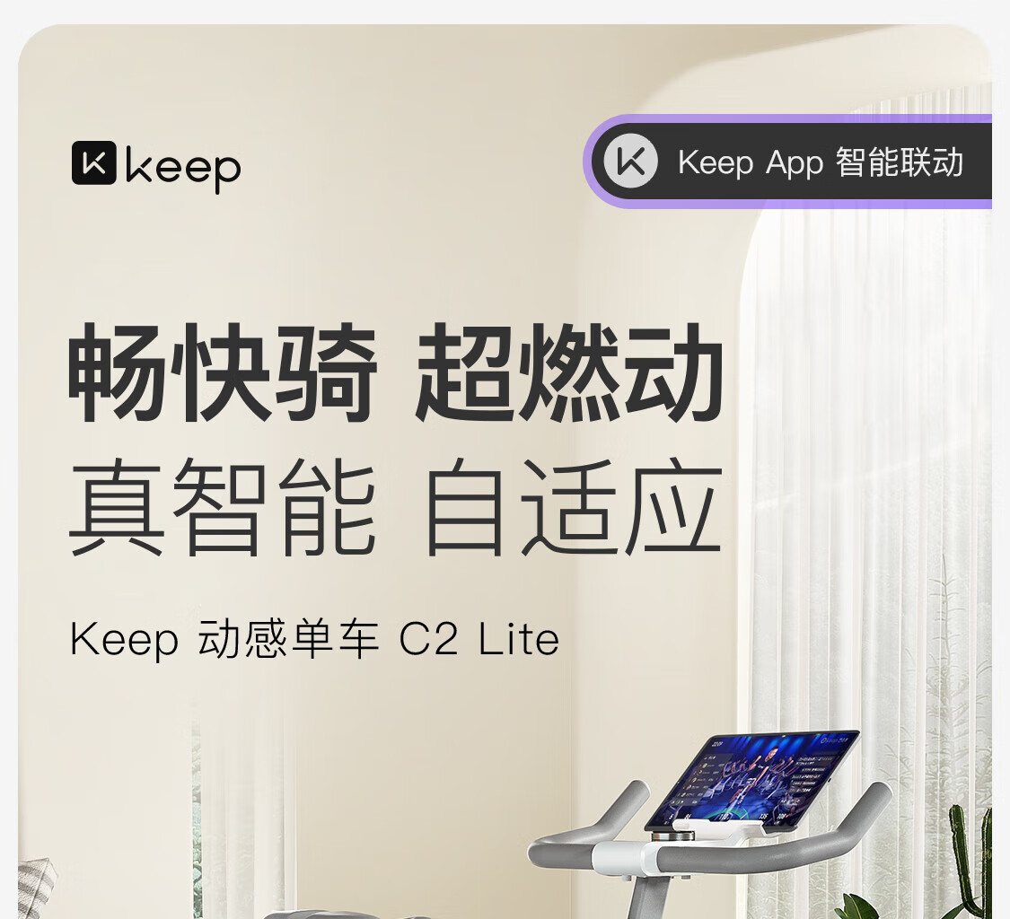 Keep动感单车 家用智能健身器材C2 Lite自发电 20斤飞轮组 白K0105B【KLJJZQ15.0】