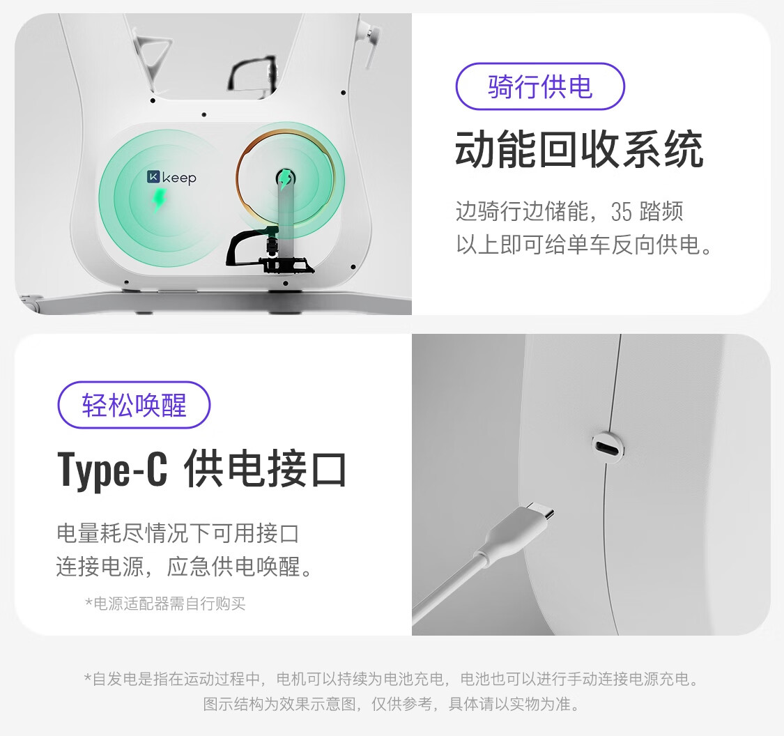 Keep动感单车 家用智能健身器材C2 Lite自发电 20斤飞轮组 白K0105B