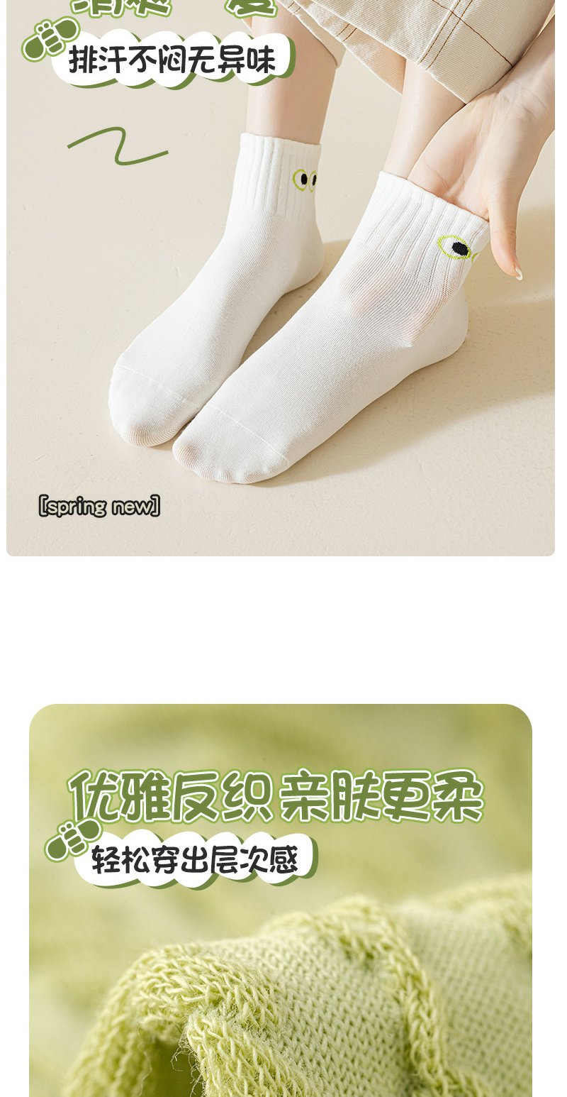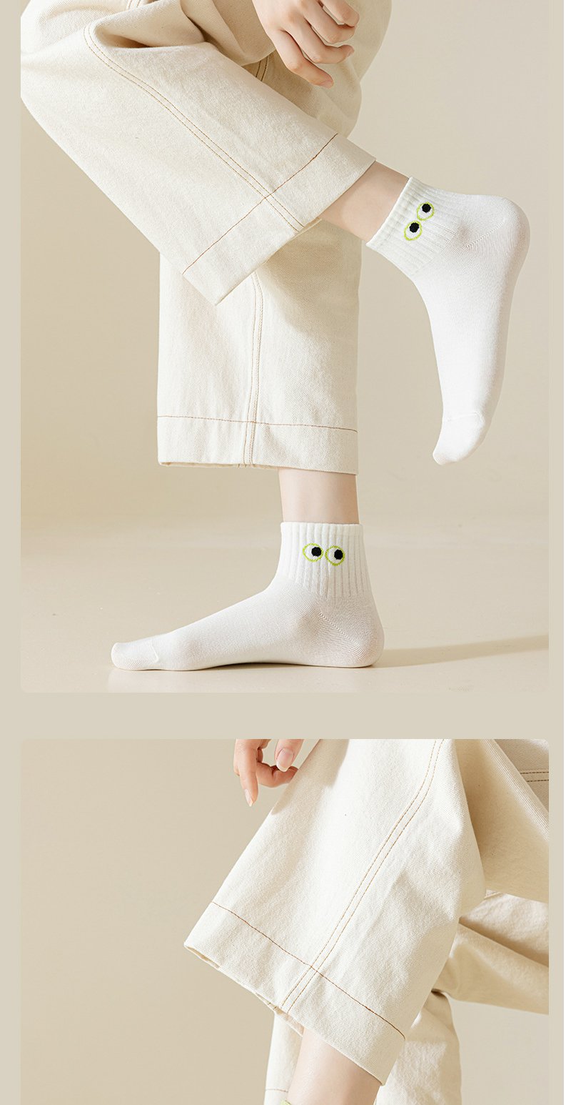 新品百搭 白色眼睛款 袜子女甜休闲袜薄款透气可爱少女中筒袜袜子1双