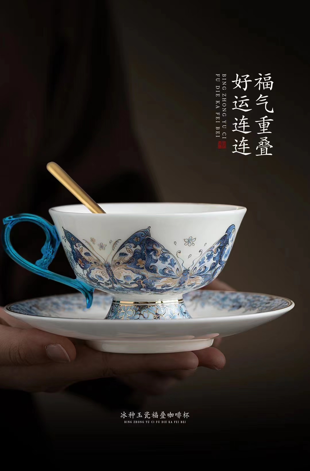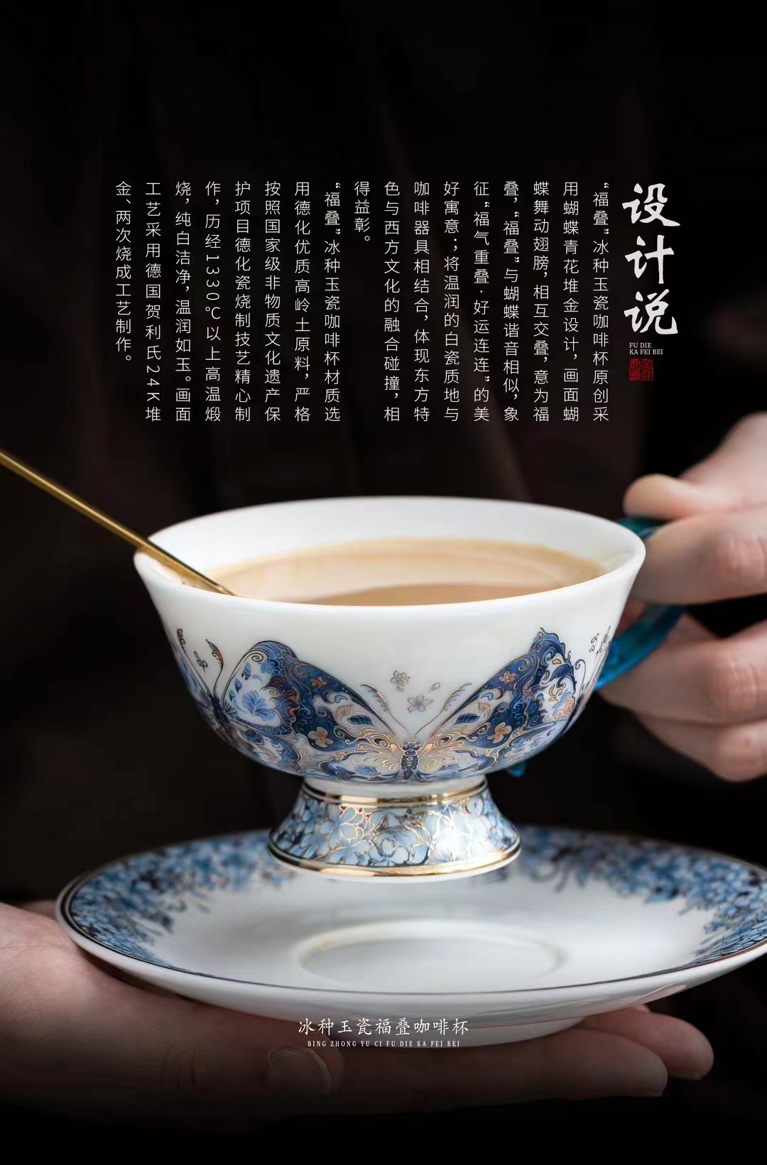福叠•冰种玉瓷咖啡杯,堆金工艺 触感立体,作者签章 品质保证,包装精致 gao端好礼