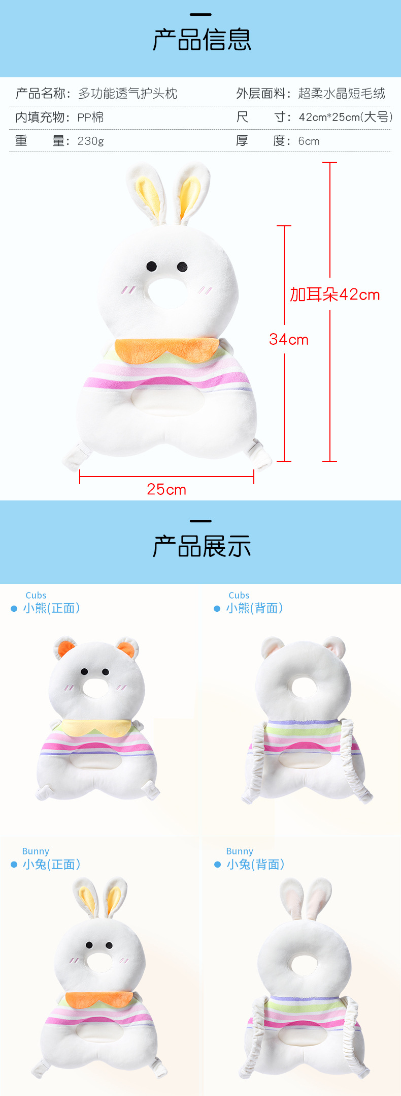 【尽情玩耍 轻松学步】新款婴儿防摔枕夏季婴儿学步护头枕宝宝防撞头部保护垫