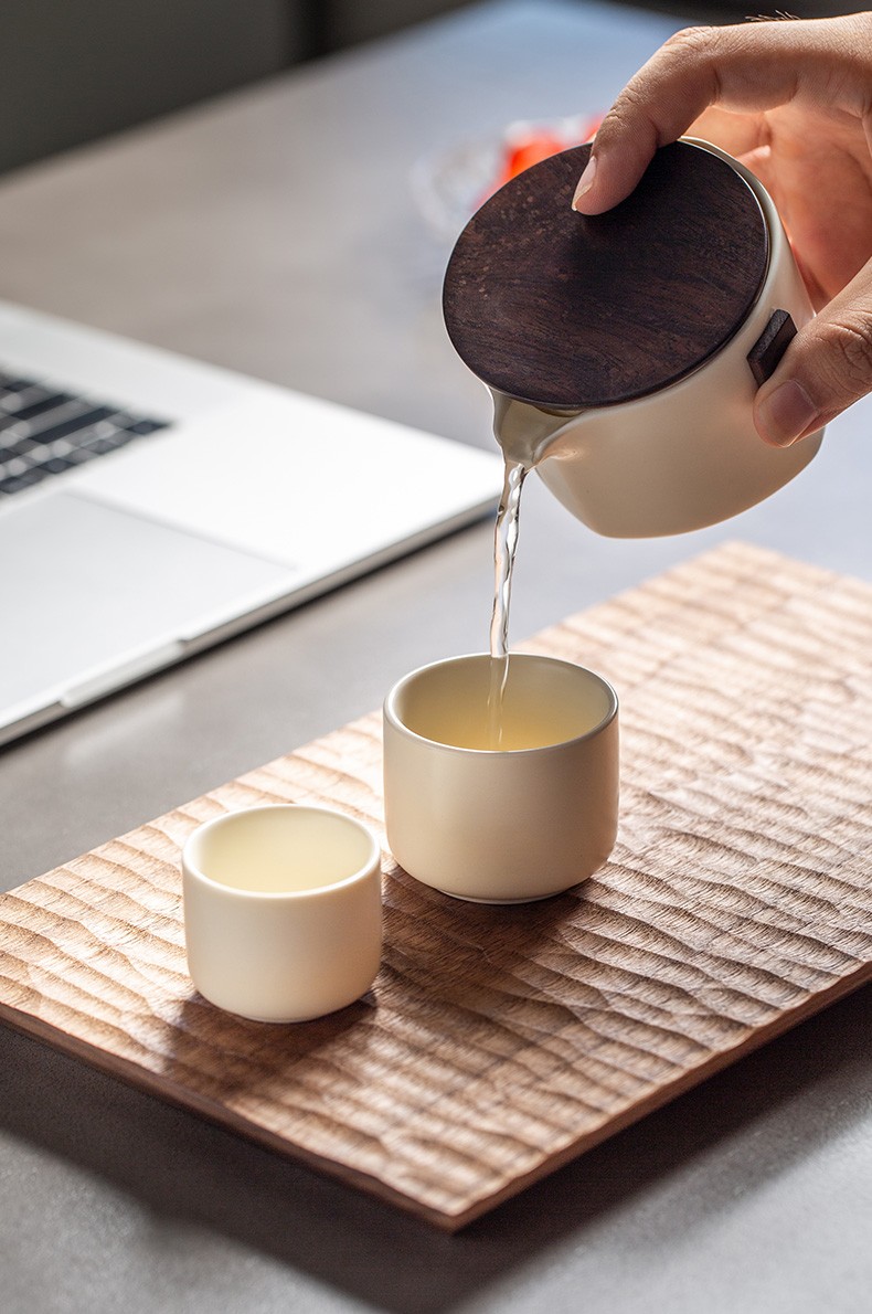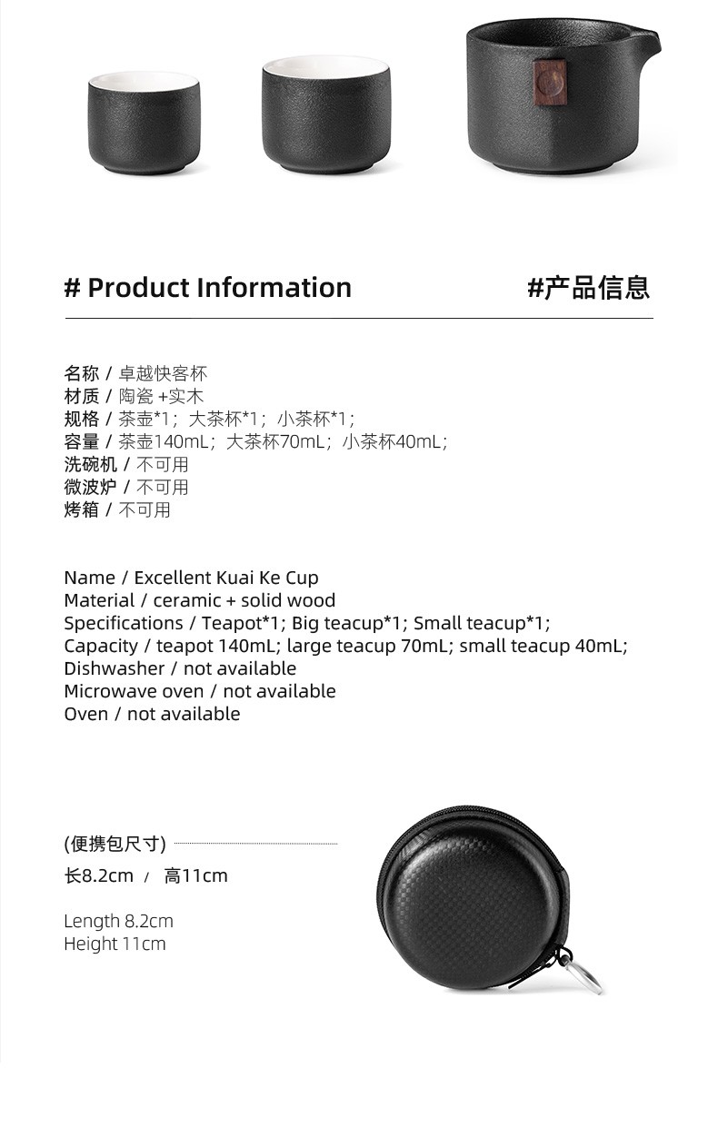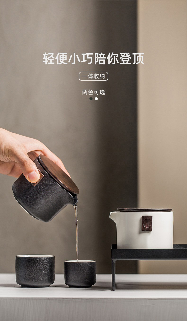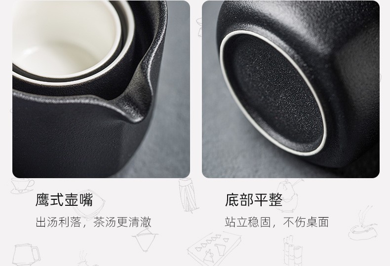 陶瓷旅行便携式快客杯一壶二杯户外小套陶瓷功夫茶具套装防烫 卓越快客杯(禅风白)T1b
