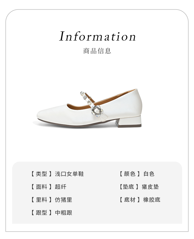 经典鲨2025秋季新品时尚小方头简约低粗跟气质玛丽珍单鞋女KW391-537011