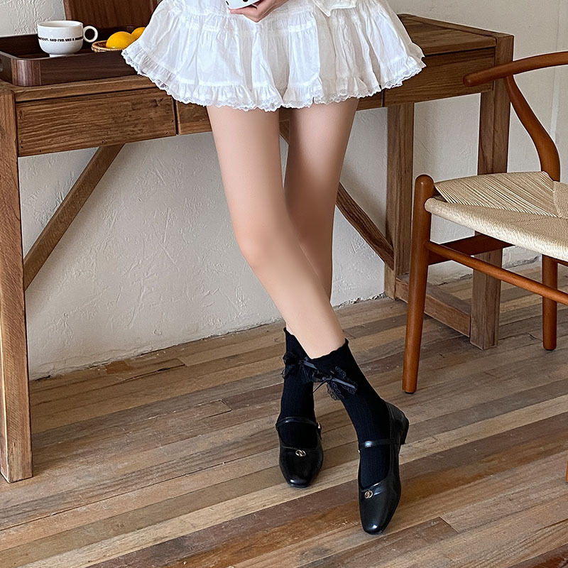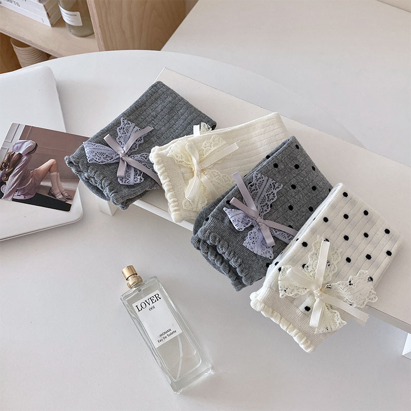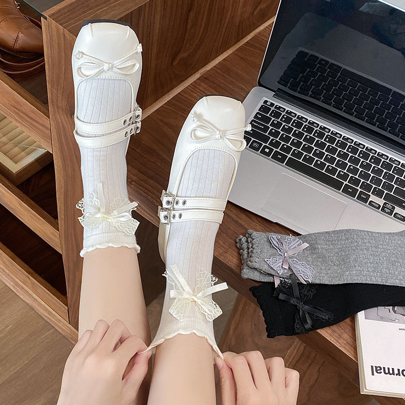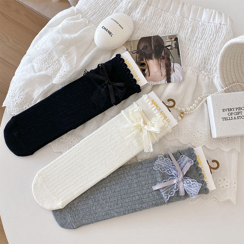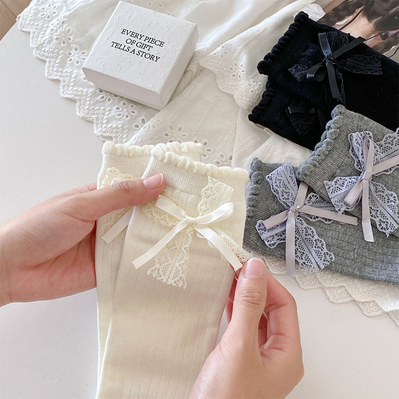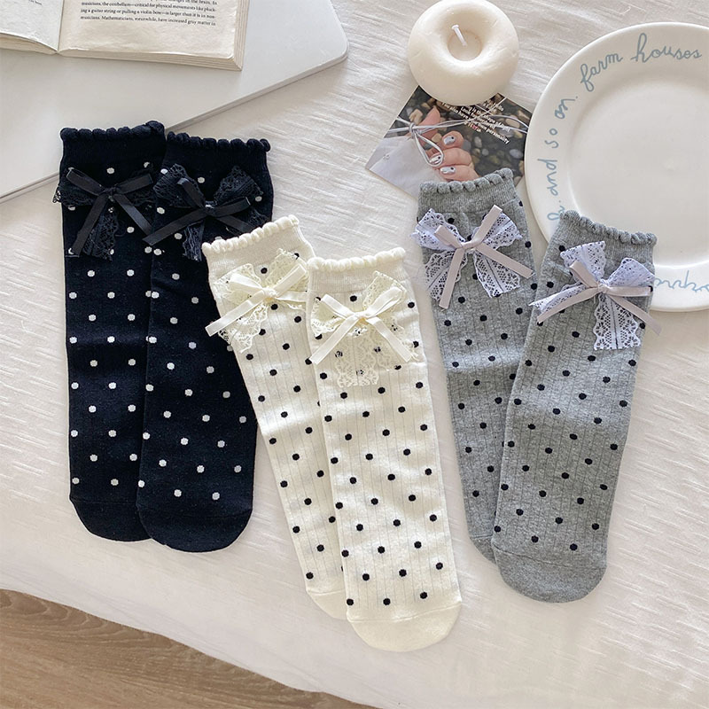 【芭蕾风❗️3双装蕾丝波点蝴蝶结袜子】春秋款中筒ins潮,排汗吸湿,亲肤不刺激,可爱女生花边堆堆袜QQ
