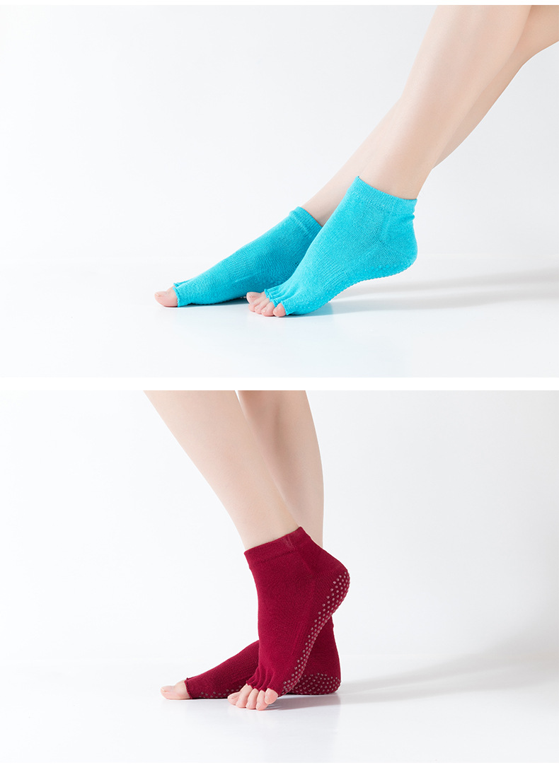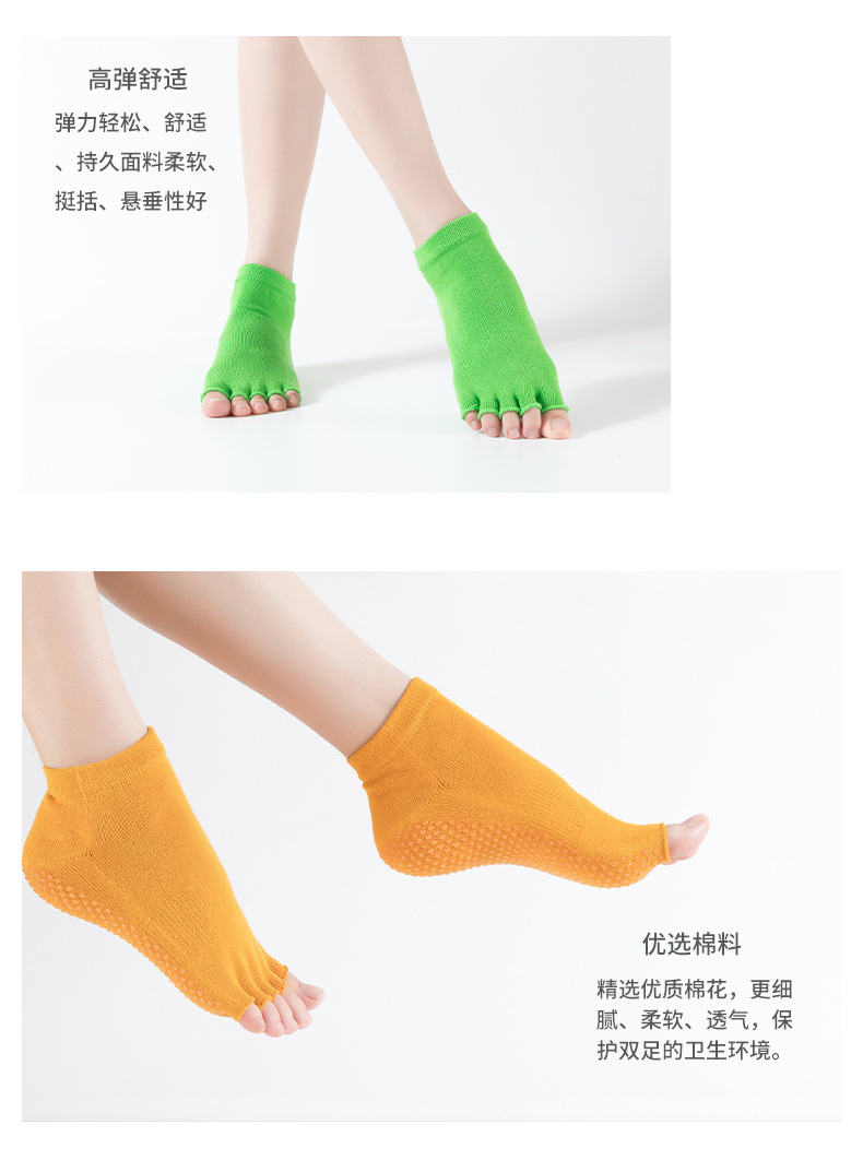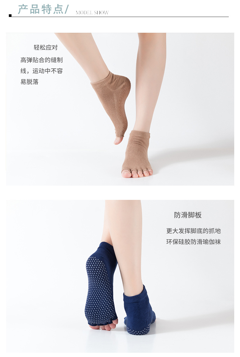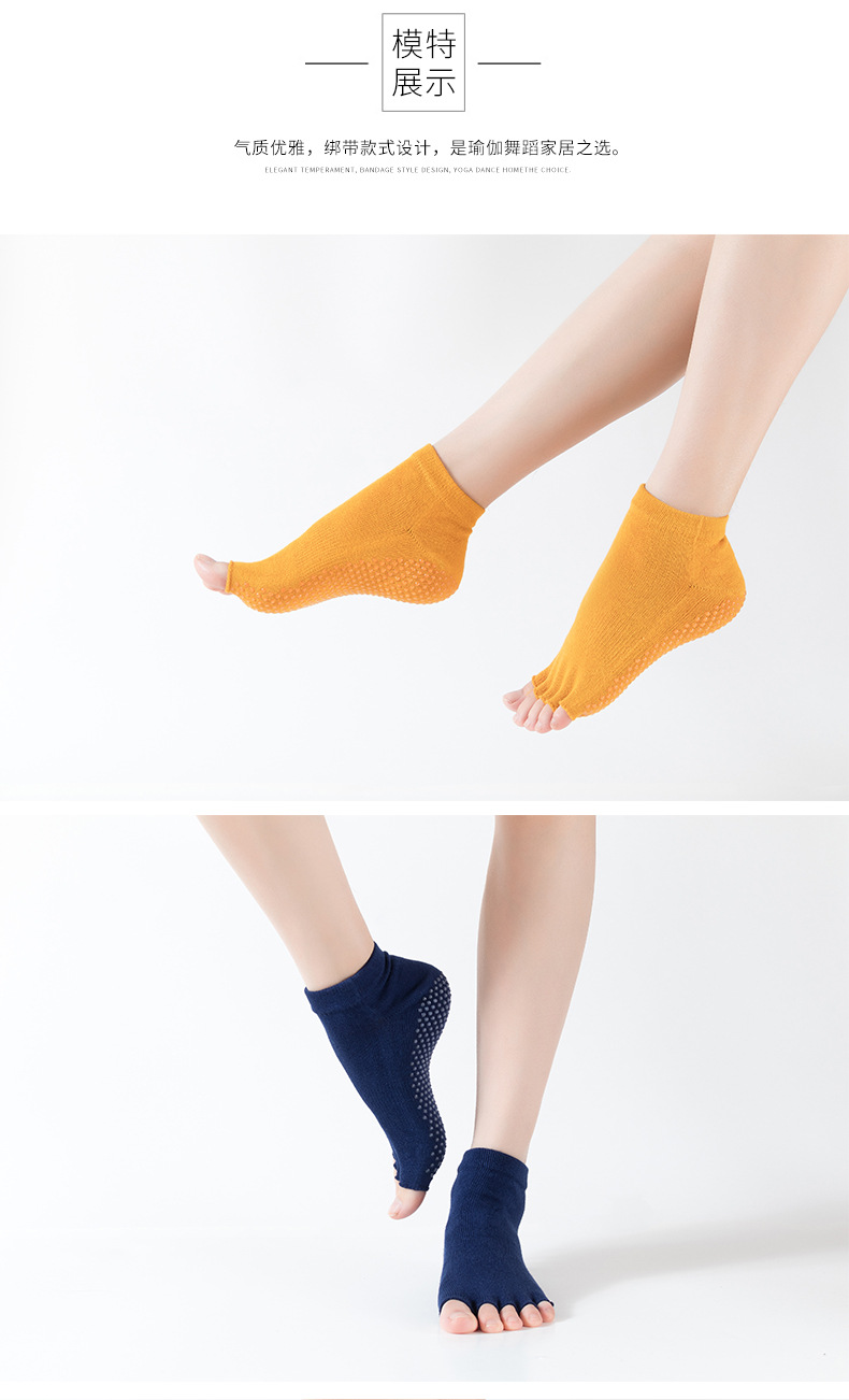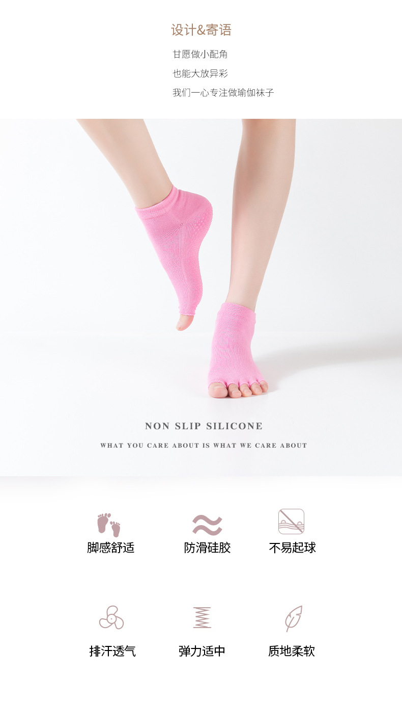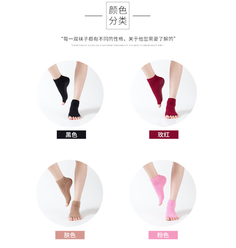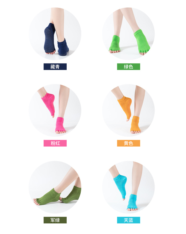 爆款女士专业防滑露趾瑜伽袜子五指袜子舞蹈袜点胶袜运动袜 XY000 橡筋线