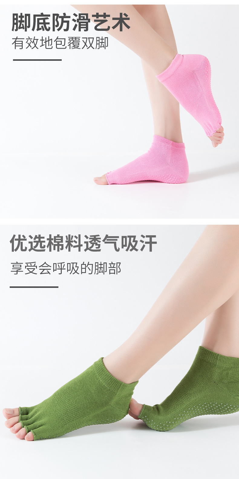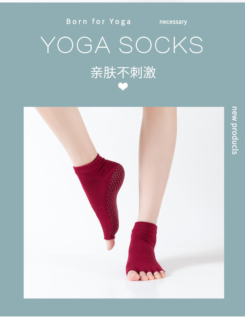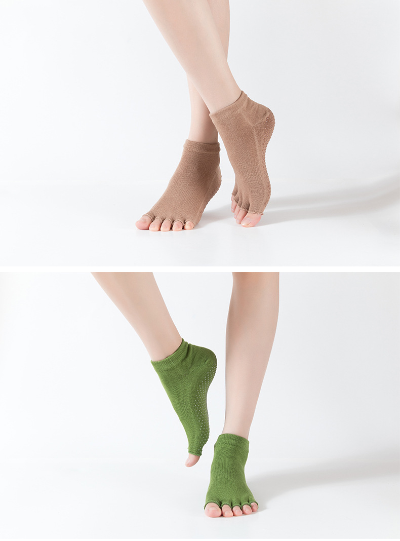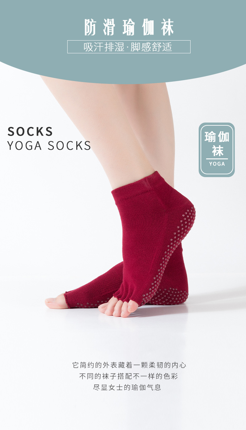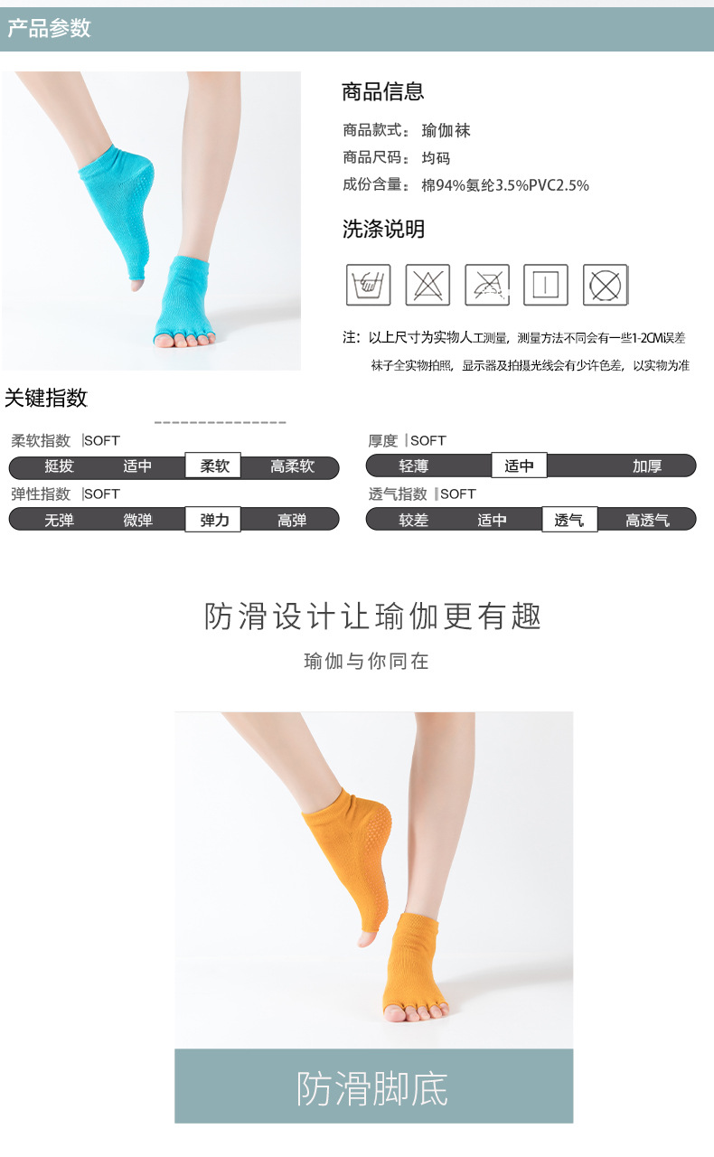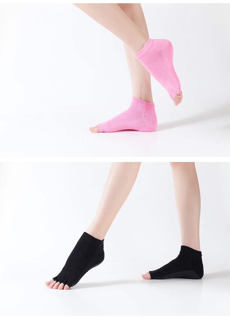 爆款女士专业防滑露趾瑜伽袜子五指袜子舞蹈袜点胶袜运动袜 XY000 橡筋线