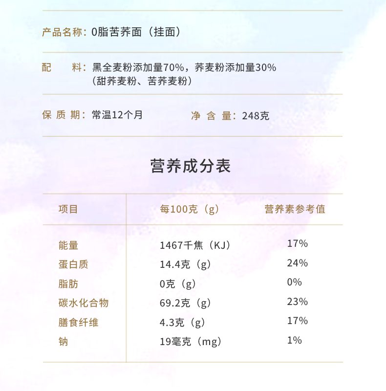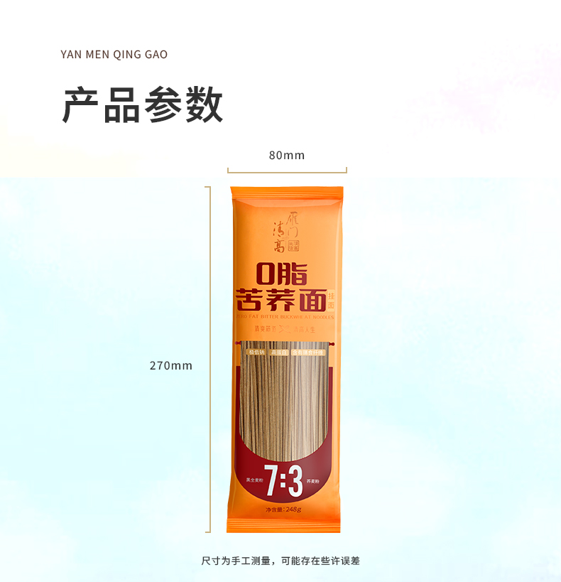 雁门清高0脂248g/袋装黑全麦苦荞面条纯荞麦面粗粮速食面挂面代餐