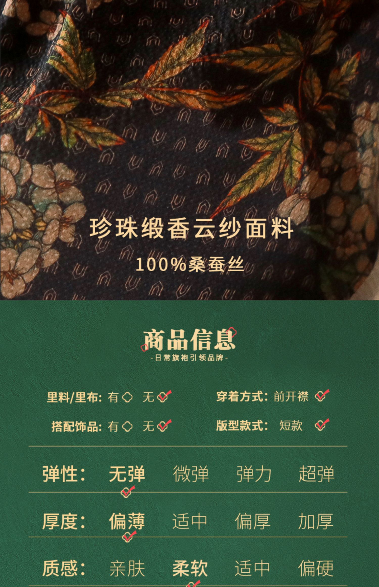 面料是 19姆米珍珠缎,前喷的香云纱,做了足足大半年才晒好的料子哦 ~! 自家的莨田,自家的手工师傅,自家的设计师给大家带来有温度的手工作品!