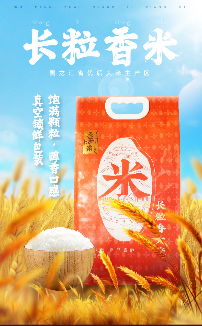 五芳斋黑龙江新米长粒香米 真空袋装2.5kg 真空锁鲜小包米 妈妈夸的米油香 懒人救星米