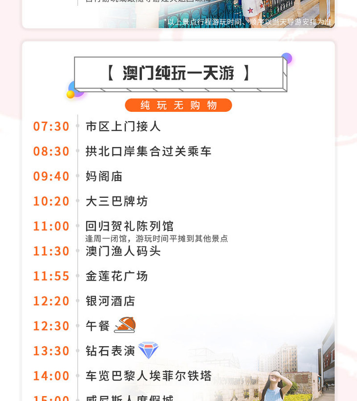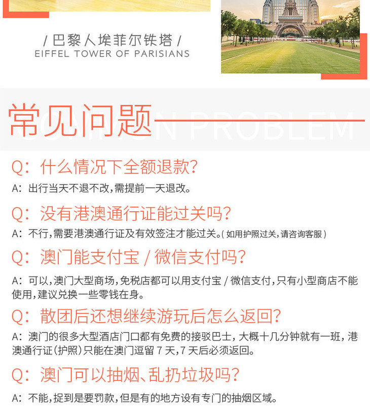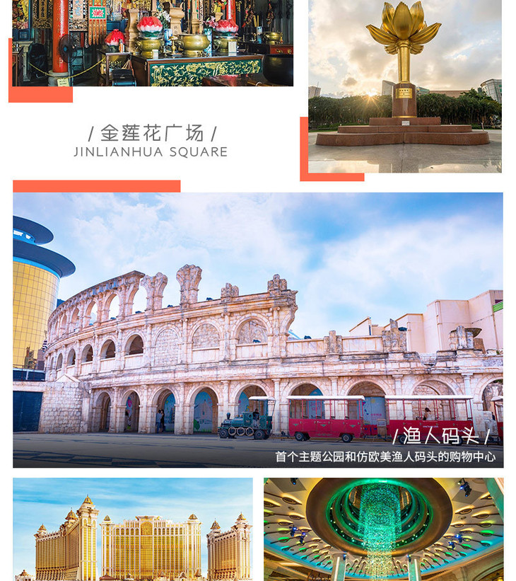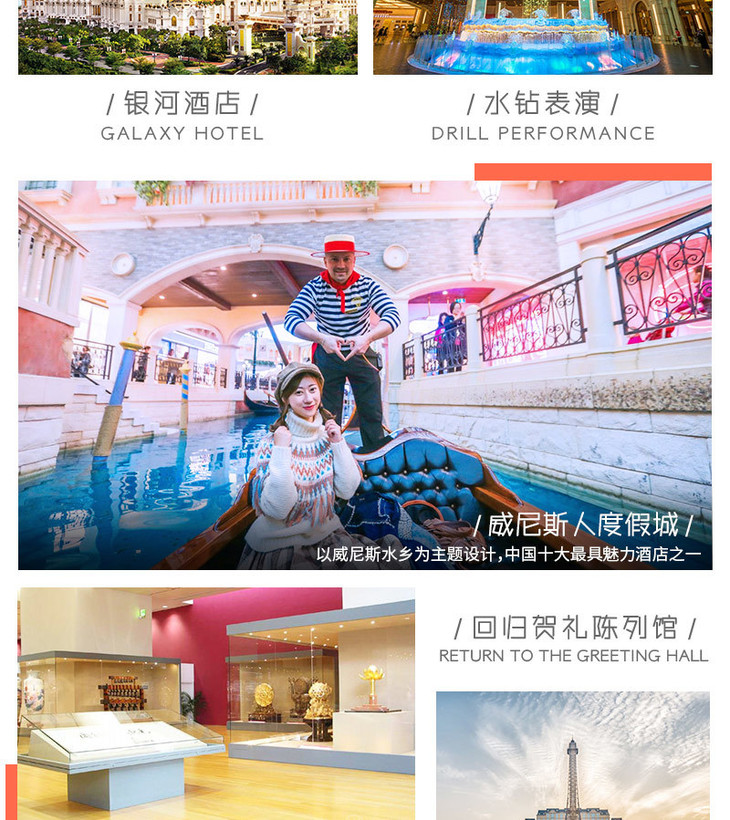 澳门纯玩一日游 商务午餐+大三巴+妈祖庙+回归贺礼陈列馆+渔人码头+金莲花广场+钻石表演+威尼斯人+巴黎人埃菲尔铁塔