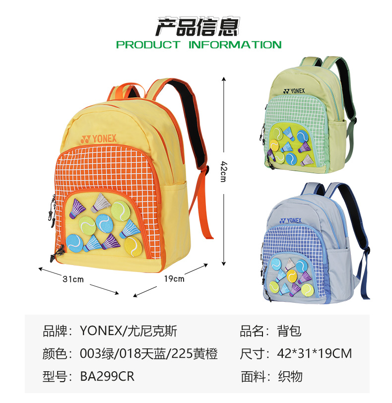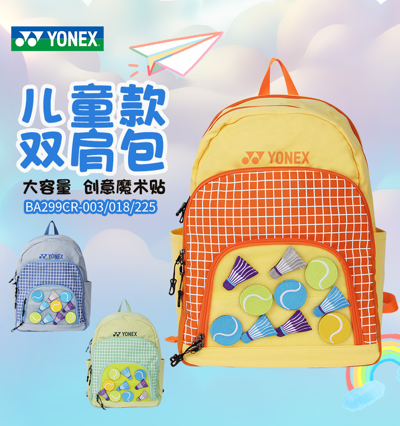 YONEX尤尼克斯yy羽毛球包儿童青少年时尚魔术贴双肩背包BA299CR