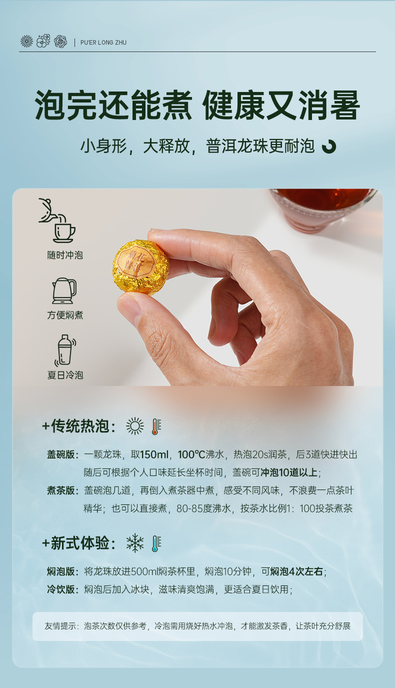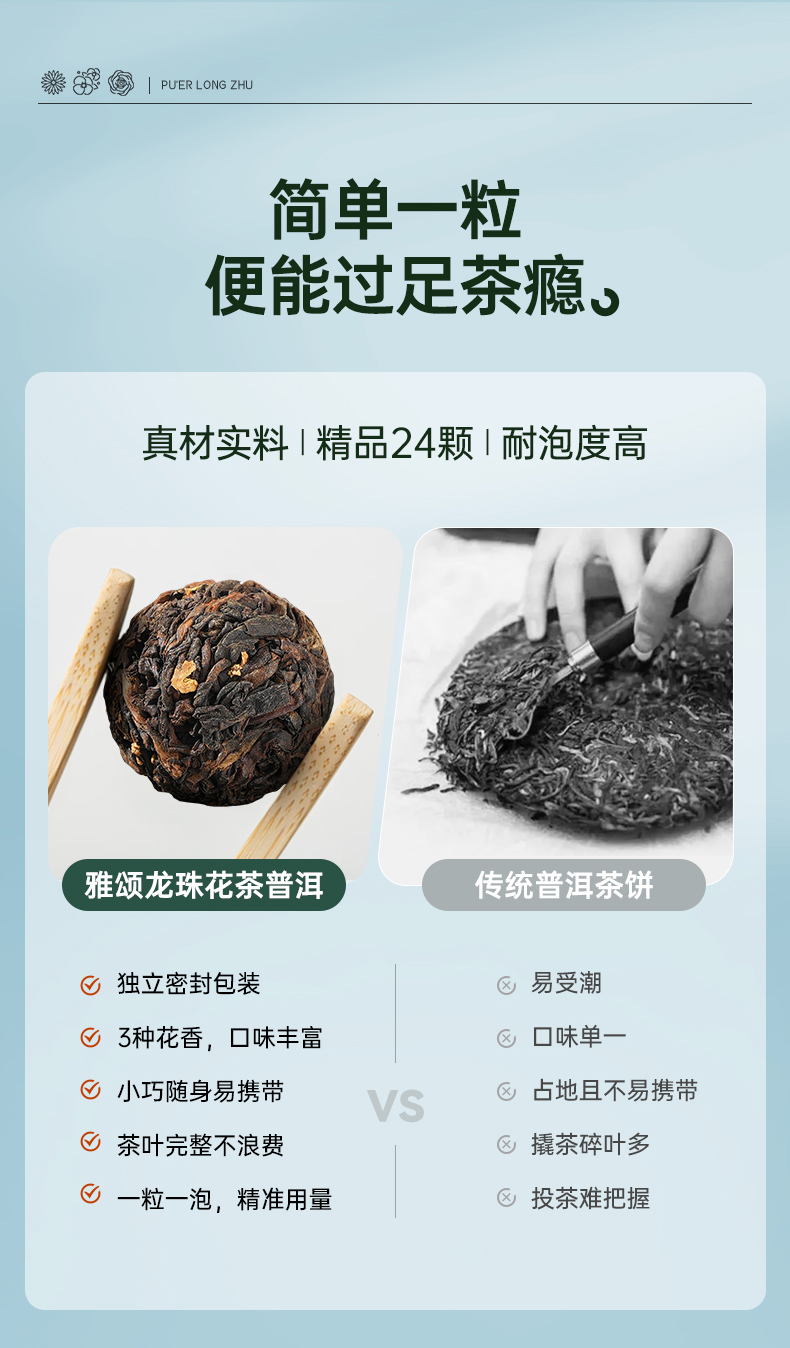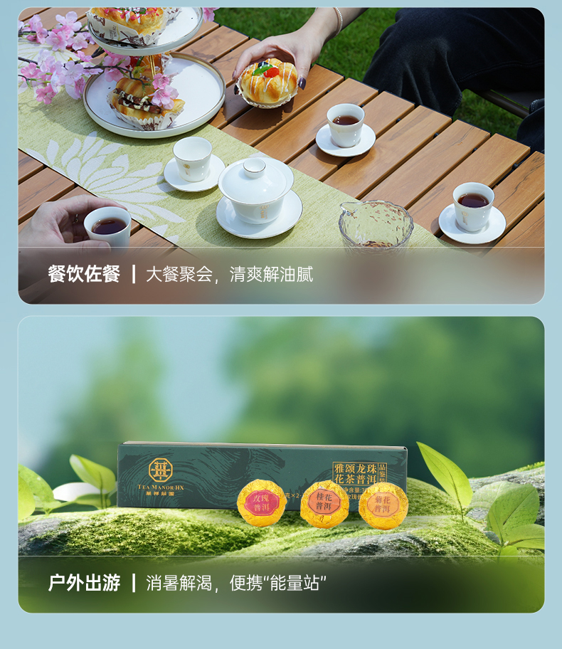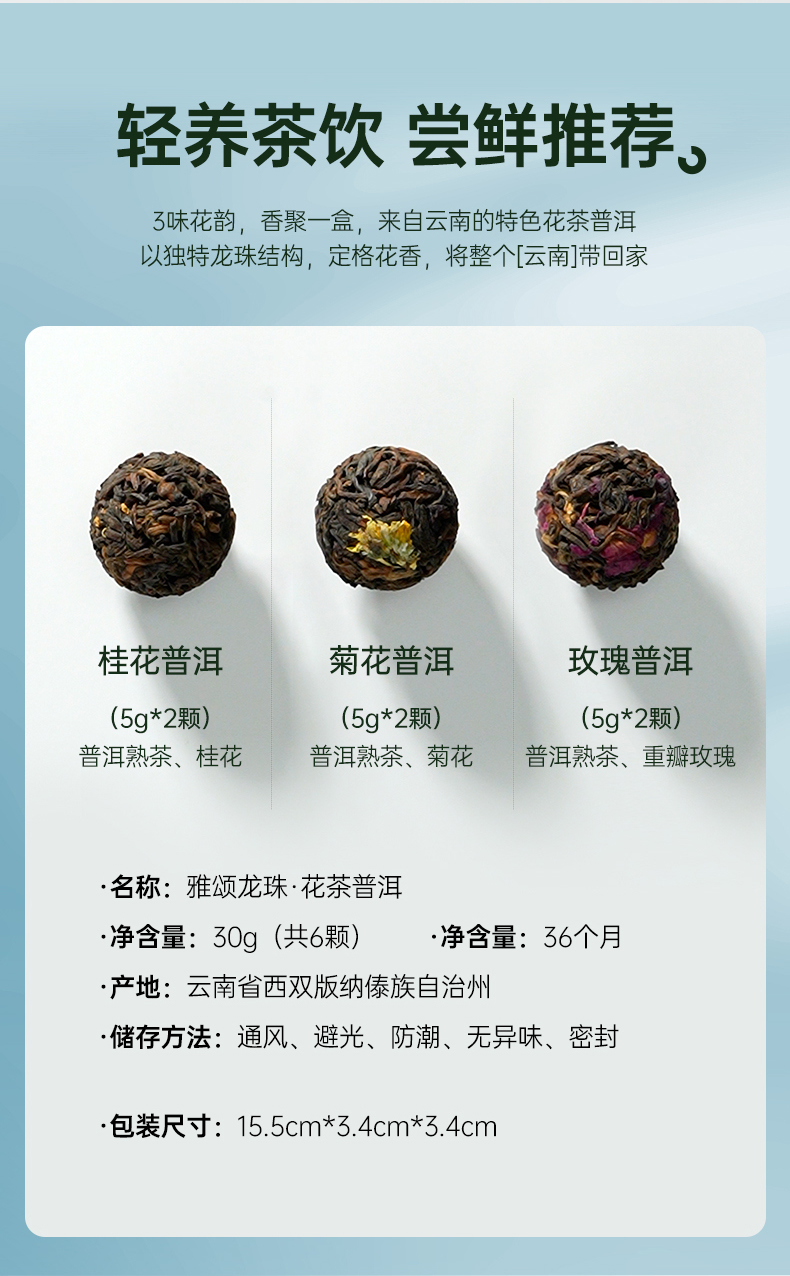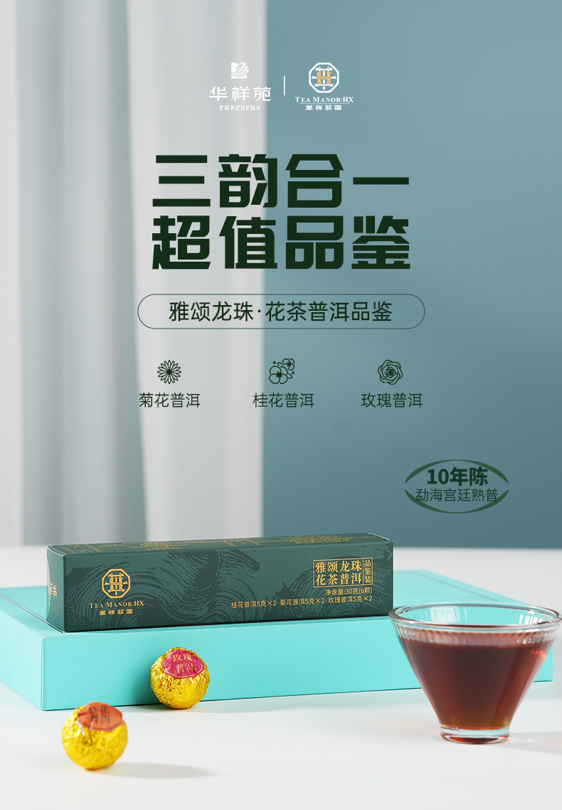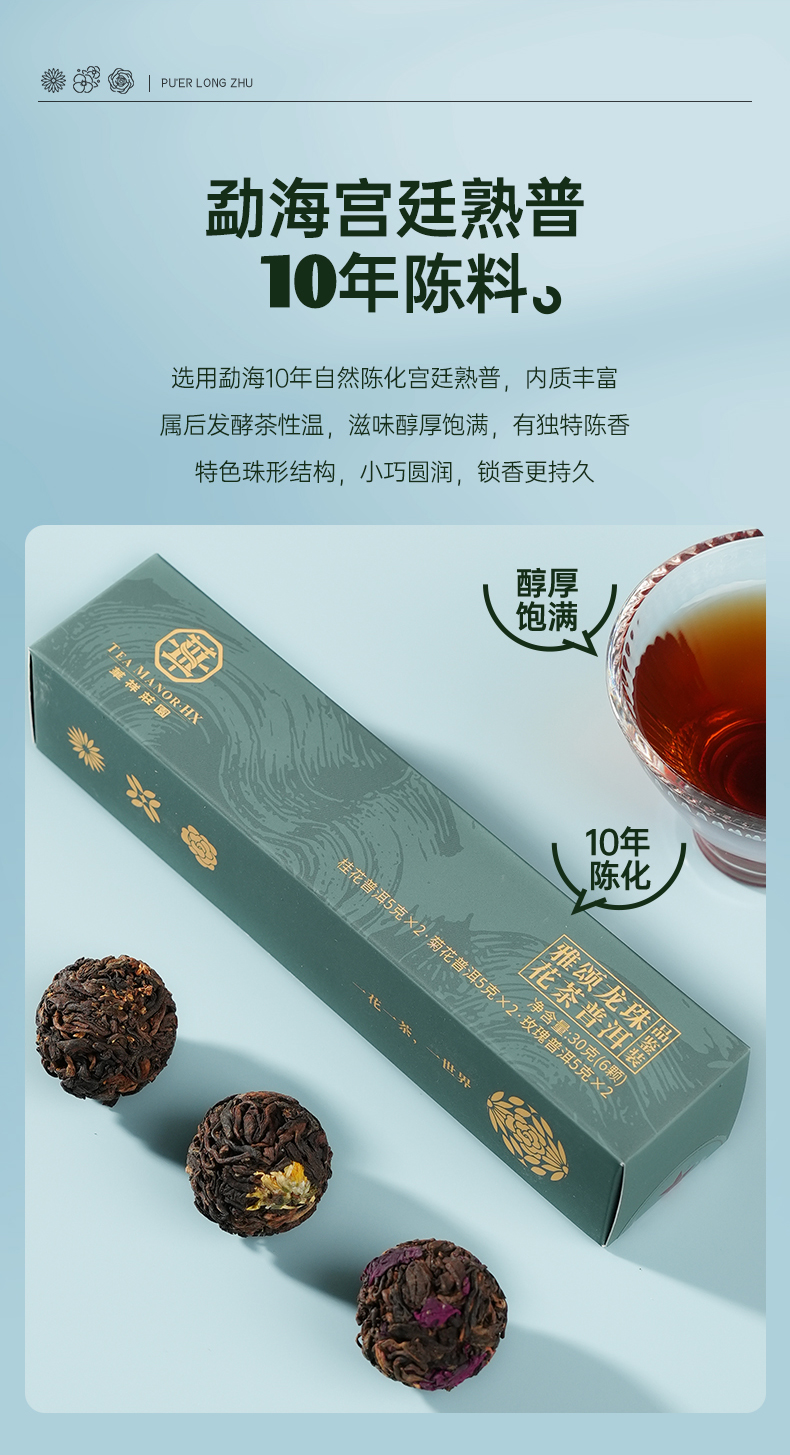 【6颗装】华祥庄园-花茶普洱龙珠30g品鉴茶(桂花普洱、菊花普洱、玫瑰普洱)