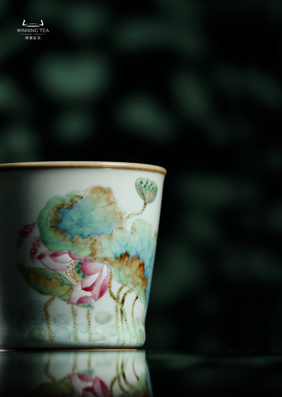 问鼎汝瓷鼎峰系列天青壬寅精工款小可乐杯(初发芙蓉)