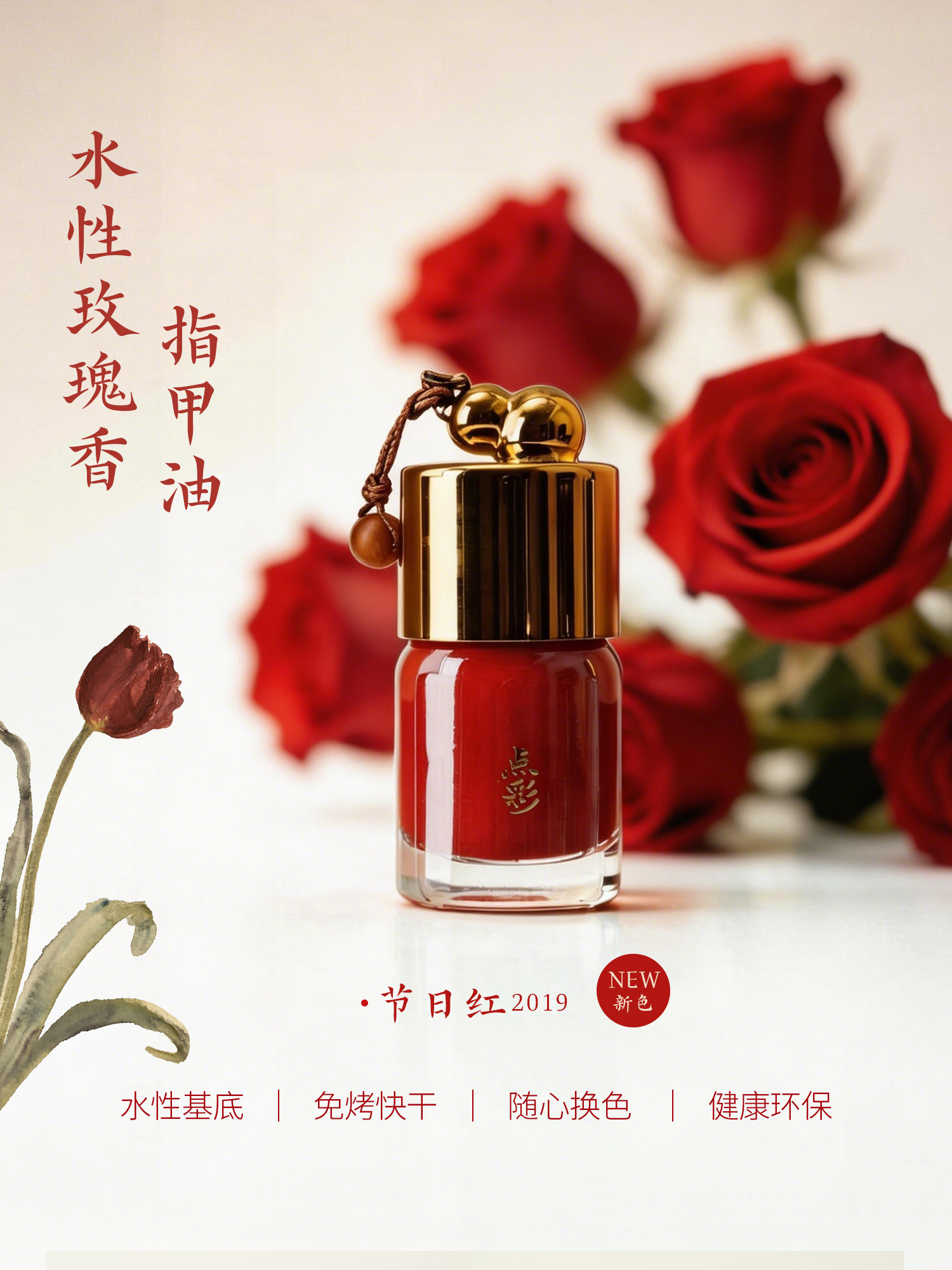 新色 节日红 水性玫瑰香指甲油 透气免烤快干不含甲醛山林曦照