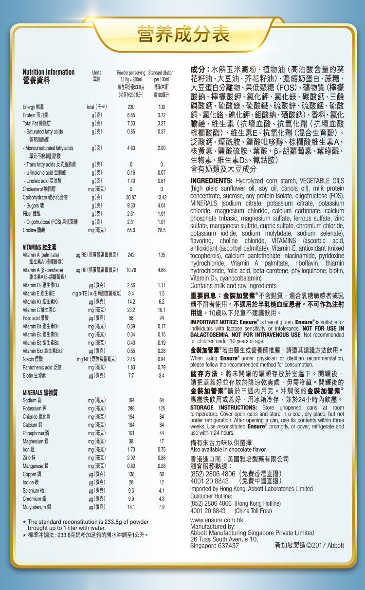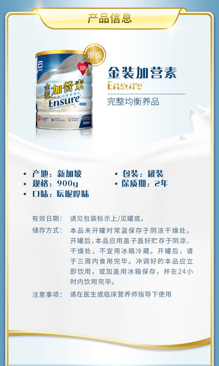 【保税仓】新加坡 Abbott雅培 港版 金装成人加营素呍呢嗱味900g